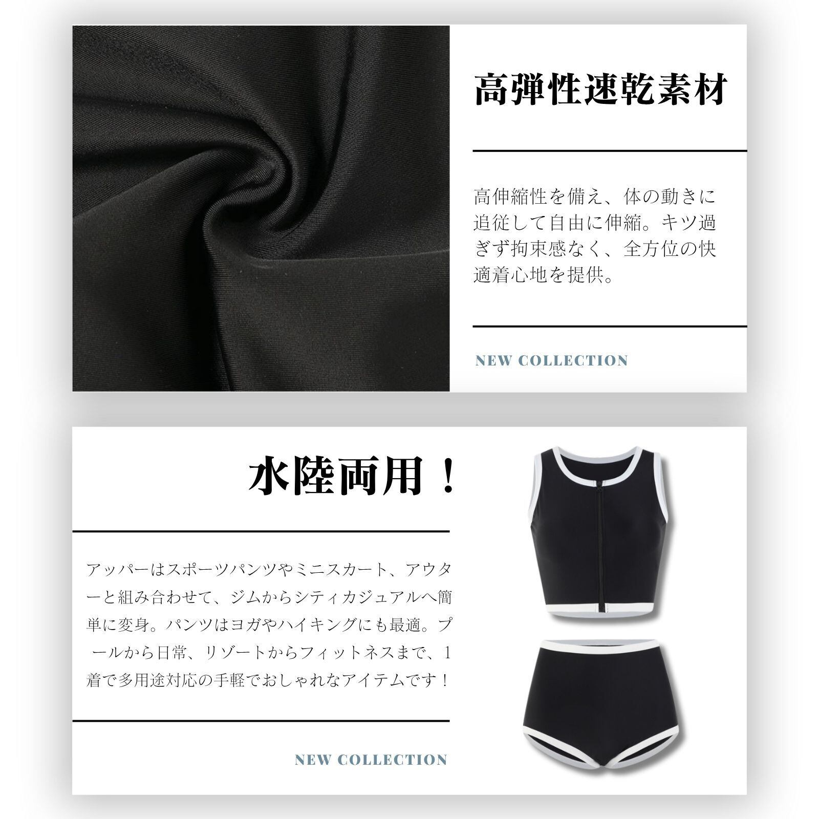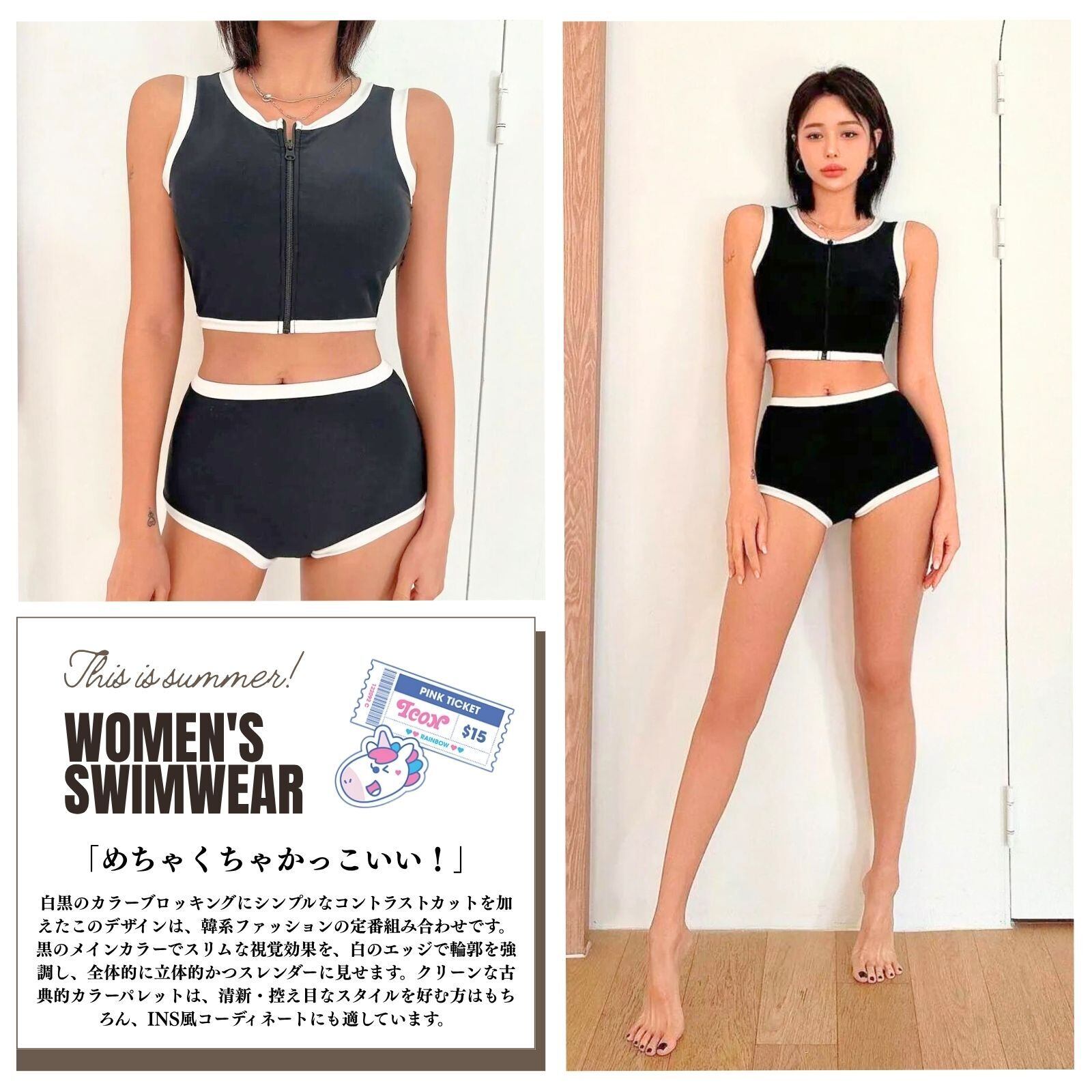水着 レディース ビキニ 上下セット ハイウエスト ショートパンツ 体型カバー 前ファスナー フィットネス水着 おしゃれ 水陸両用 韓国風 温泉 海水浴 水泳 サウナ 旅行 女性用水着 | swimstar