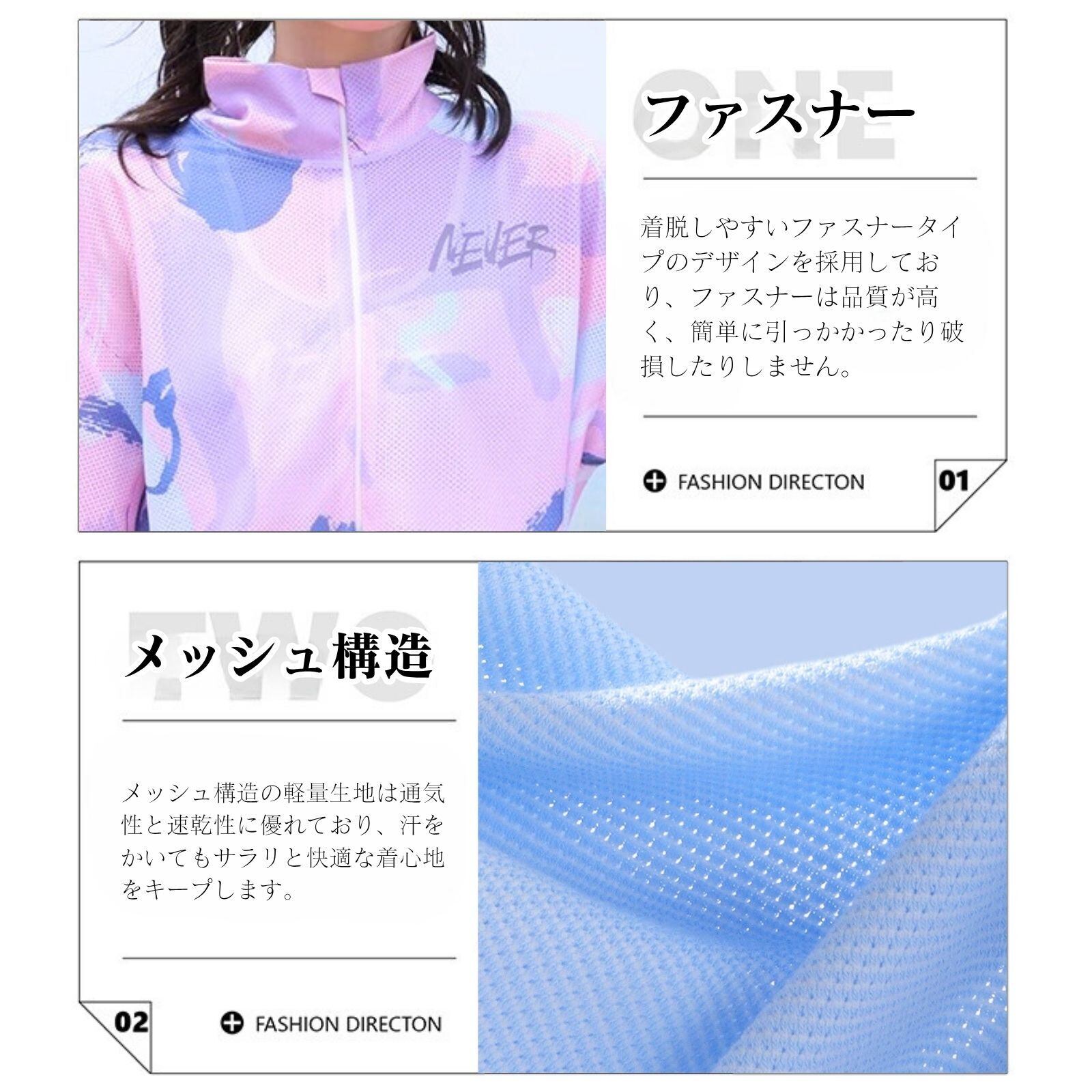 「通気性抜群のUVカット素材!」長時間の屋外活動でも安心なUVカット機能付きラッシュガードは、日焼け対策に最適。メッシュ構造の軽量生地は通気性と速乾性に優れており、汗をかいてもサラリと快適な着心地をキープします。夏の強い日差しや水辺の反射光から肌をしっかりガードしながら、蒸れにくく爽やかに過ごせます。