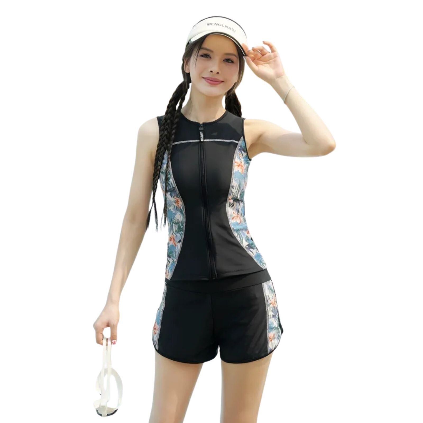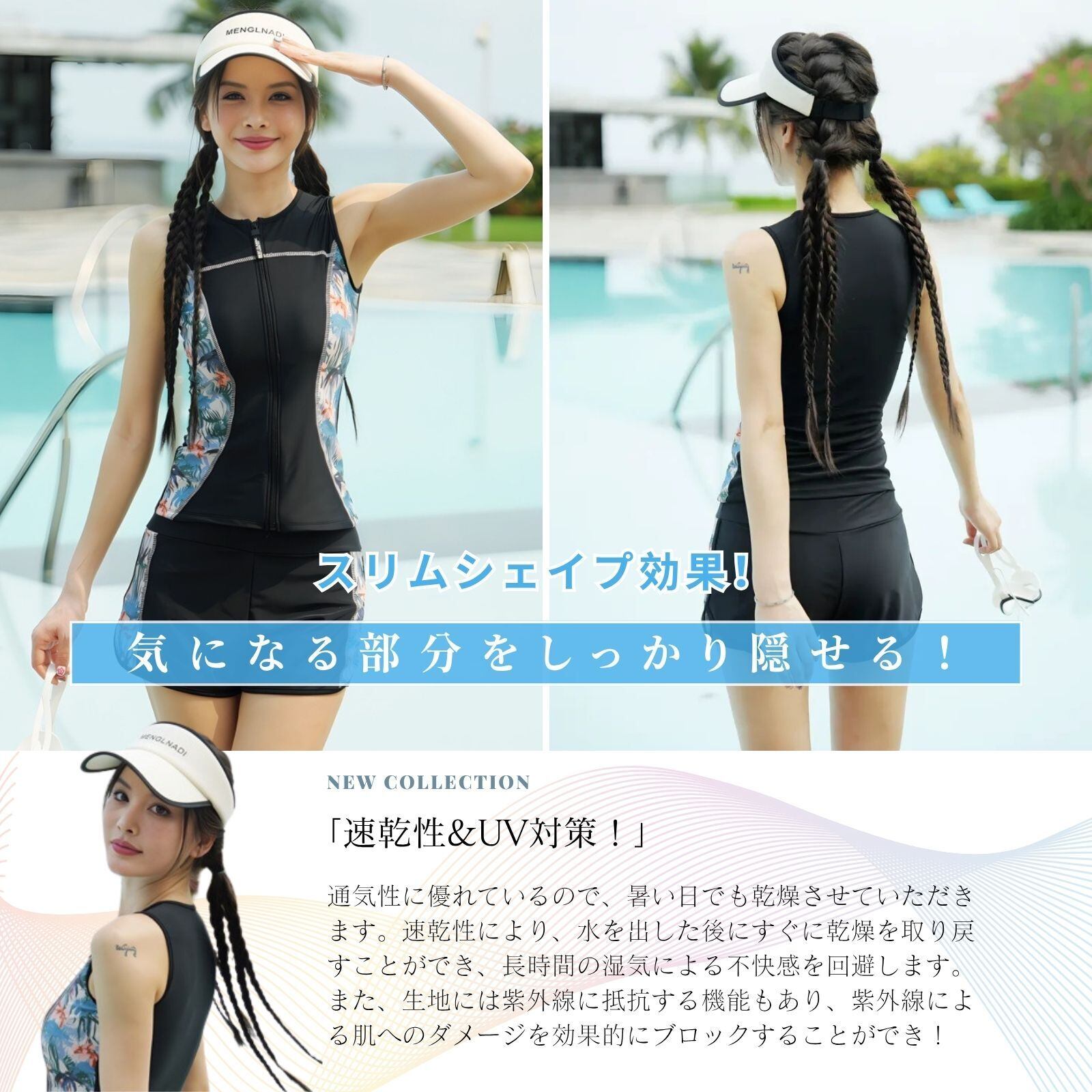 「おしゃれで実用的!」上下分体デザインで、ファッションと実用を兼ね備えます。上着は前開き丸首ベストで、腹部と腰部をカバーしてスリム感を出します。下はゆったりショーツで、運動感があり且つ安心感があり、走光しにくく動きやすいです。水泳、サーフィン、ビーチ活動などどのシーンでも、優雅と自由を保ちながら健康的な美しさを表現できます。