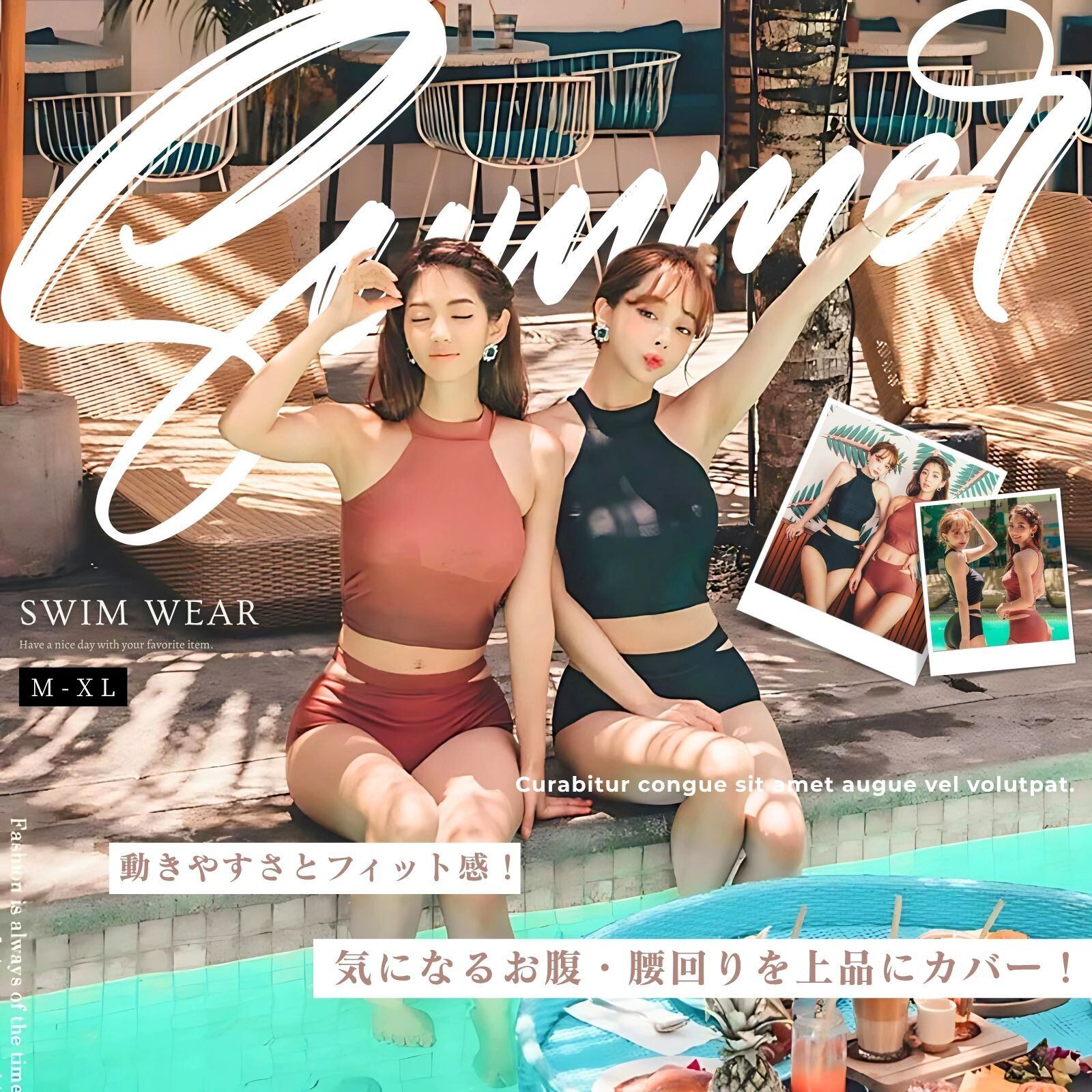 「包み込むような安心感!」下半身のラインをしっかりカバーしつつ、ボディラインに自然にフィットする設計は、体型を選ばず着こなせるのが魅力。ウエストやヒップのラインを整え、スタイルアップ効果も◎。特に30代~40代の大人女性や産後ママ、久しぶりの水着に不安がある方にこそ選んでほしい水着です。