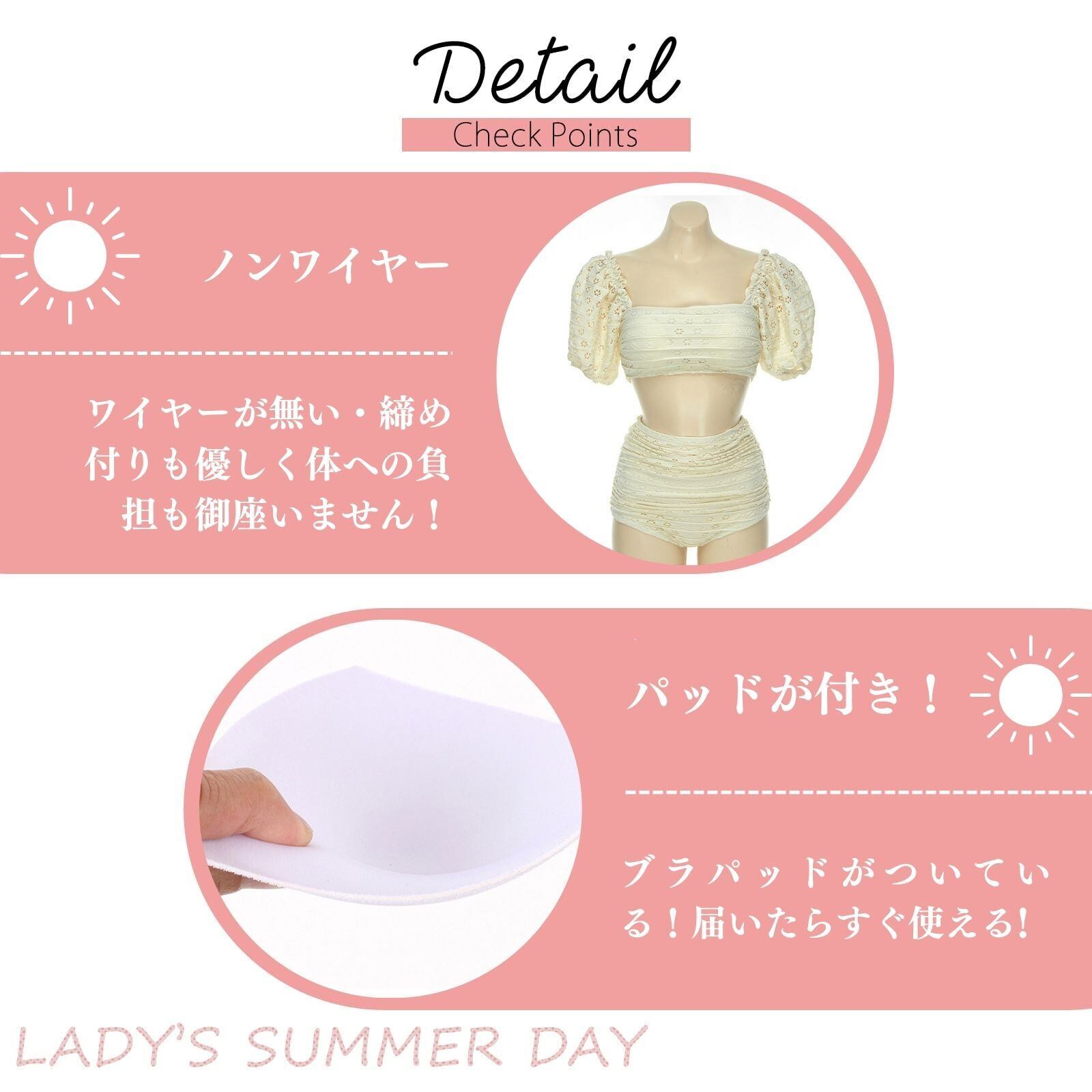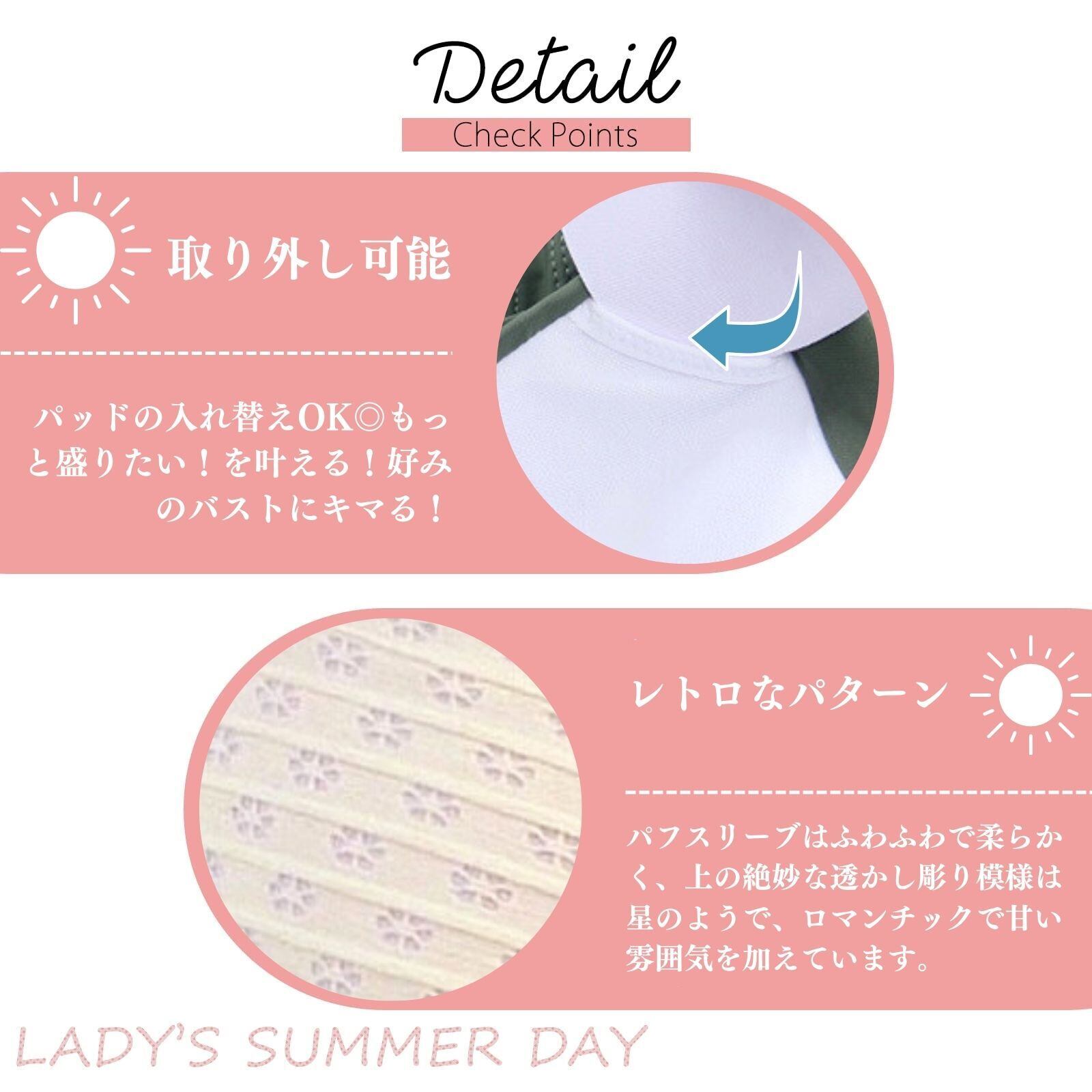 「夏はいろんな場所で大活躍!」プールサイドでは、パフスリーブとスクエアネックのデザインがとても甘くエレガントに映え、精巧なレースの柄が魅力的な雰囲気を漂わせます。ビーチを散策するとき、ハイウエストのボトムスが体のラインを整え、快適な生地は太陽の光や海風にも耐えます。薄いチュールのアウターと合わせて、浜辺のレストランに入ると、瞬時にエレガントな雰囲気に切り替わり、夏の様々なシーンにスムーズに適応できます。