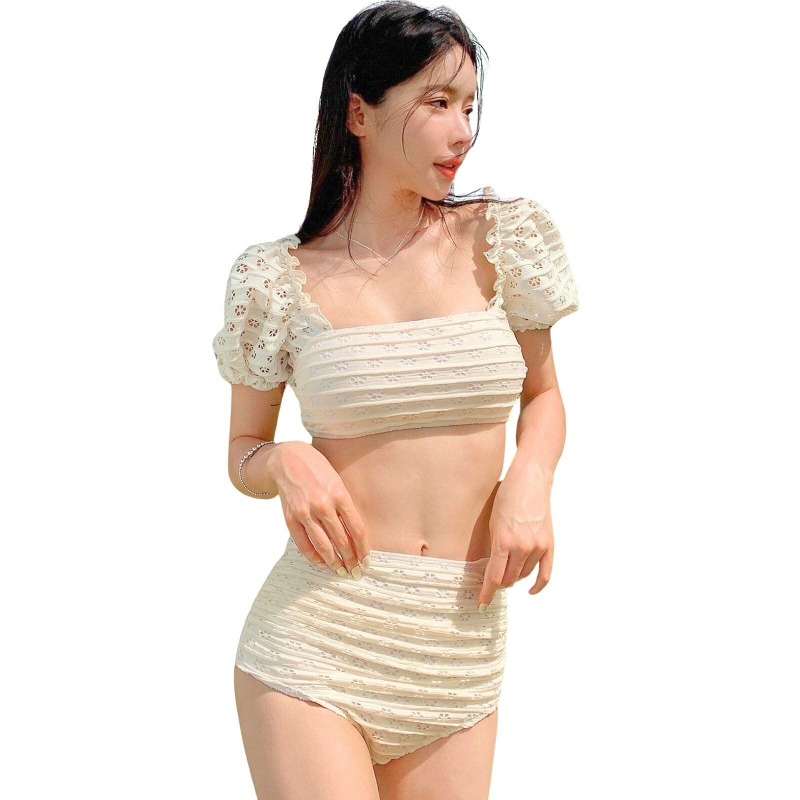 「スイートプリンセススタイル!」この水着のトップは魅力的なパフスリーブのデザインで、まるで童話から出てきたプリンセスの衣装のようです。パフスリーブはふわふわで柔らかく、上の絶妙な透かし彫り模様は星のようで、ロマンチックで甘い雰囲気を加えています。それを着ると、あなたはビーチの小さな王女で、あなたはあなたが太陽の光とビーチを楽しみながら注目の焦点になるように、あなたの手足に優雅さと遊び心を示します。