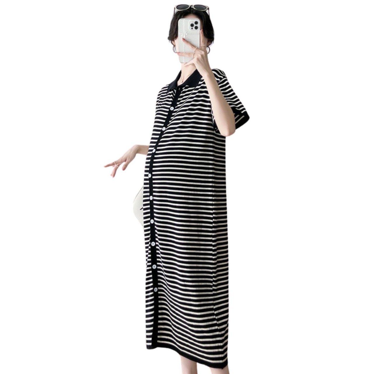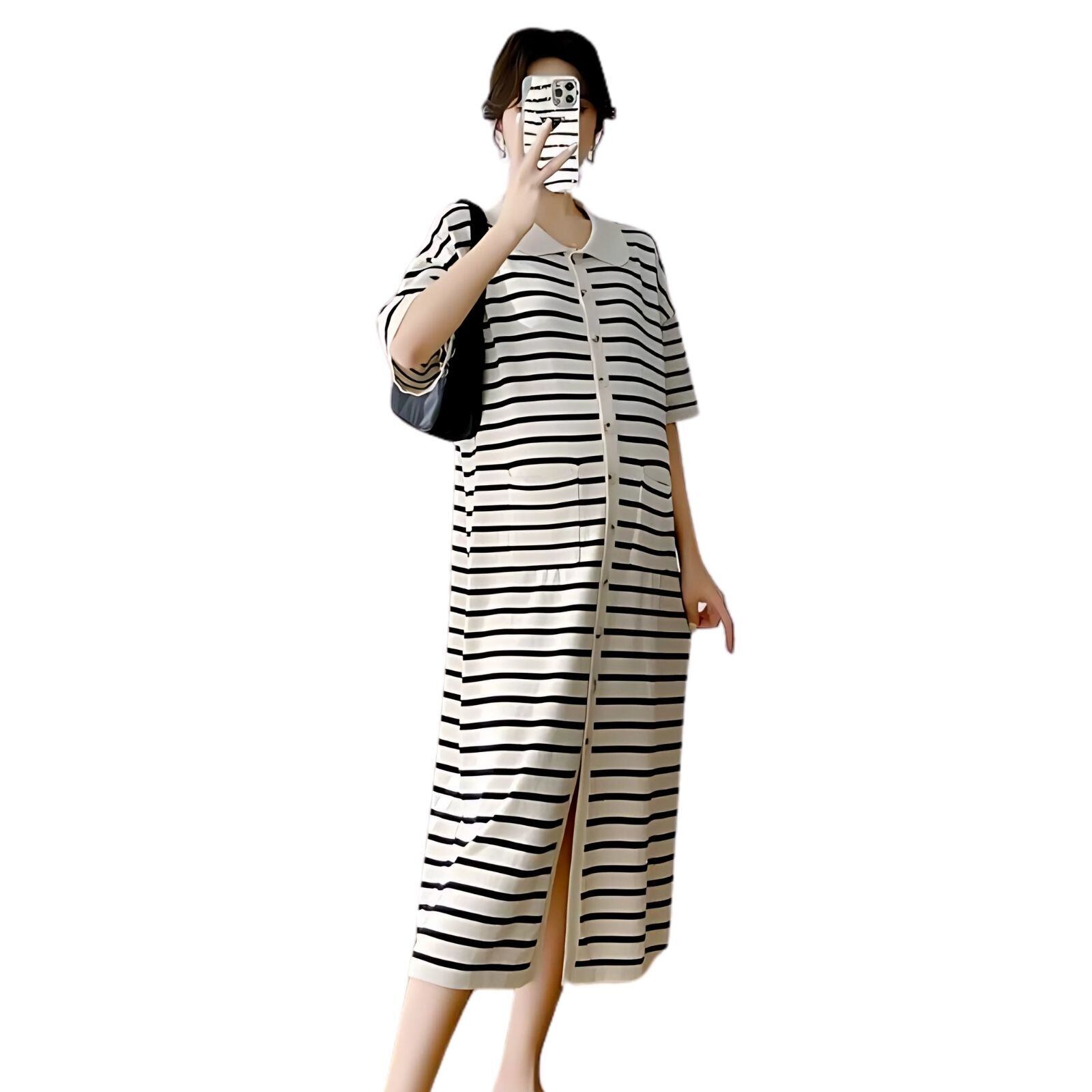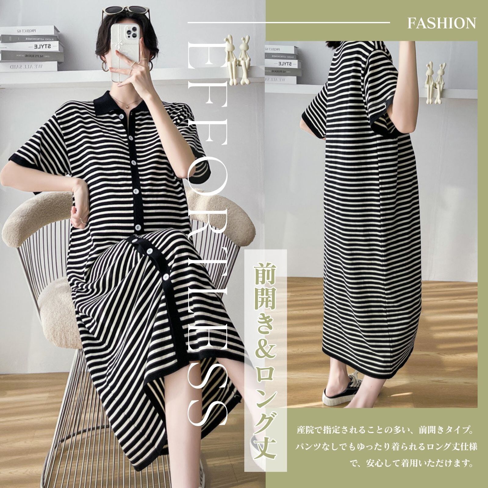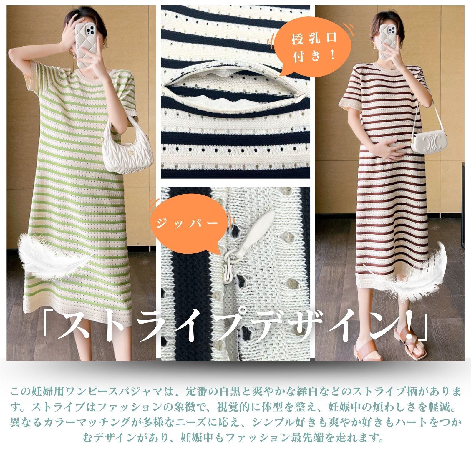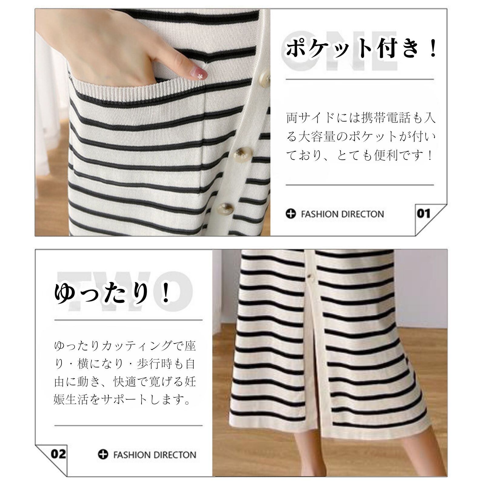 「ファッション感たっぷり!」この妊婦用ワンピースパジャマは、定番の白黒ストライプ柄を採用しており、シンプルながらもファッション感たっぷりです。ストライプ要素は視覚的に痩せ見せ効果があるだけでなく、妊婦の方に独特の魅力をプラスします。自宅でのくつろぎ時でも外出散歩時でも、優雅で目立つ存在になれます。