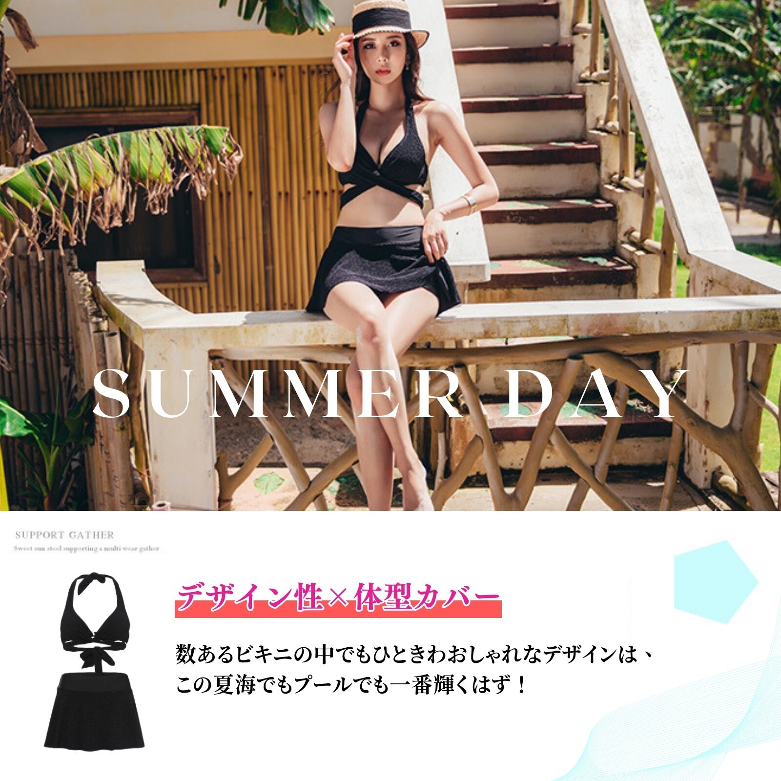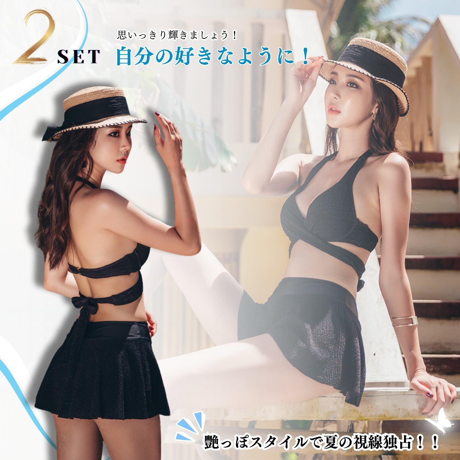 【 思いっきり輝きましょう! 】スカートタイプのビキニなので露出が多すぎず、大人の女性らしい魅力をアピールできます!数あるビキニの中でもひときわおしゃれなデザインは、この夏海でもプールでも一番輝くはず!こんな水着を着て、夏を満喫すれば一生残る思い出になること間違いなしっ!