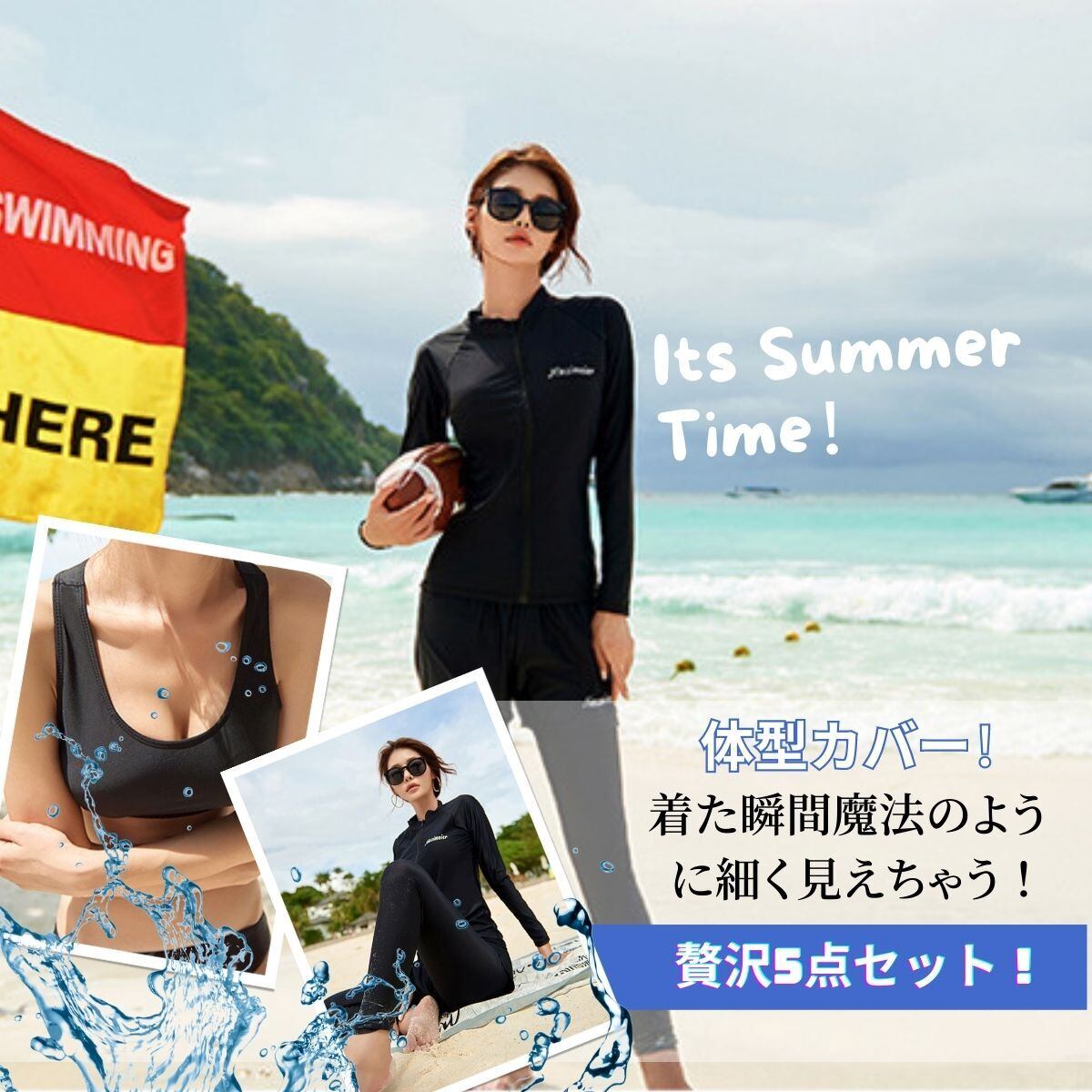 【適用場合】夏場のウォータースポーツや野外活動の際、海、ジム、プールやビーチ、サーフィン、ウォーキング、ジョキング、ジム、ヨガ、体操、温泉、ビーチなどの様々なシーンで大活躍です。