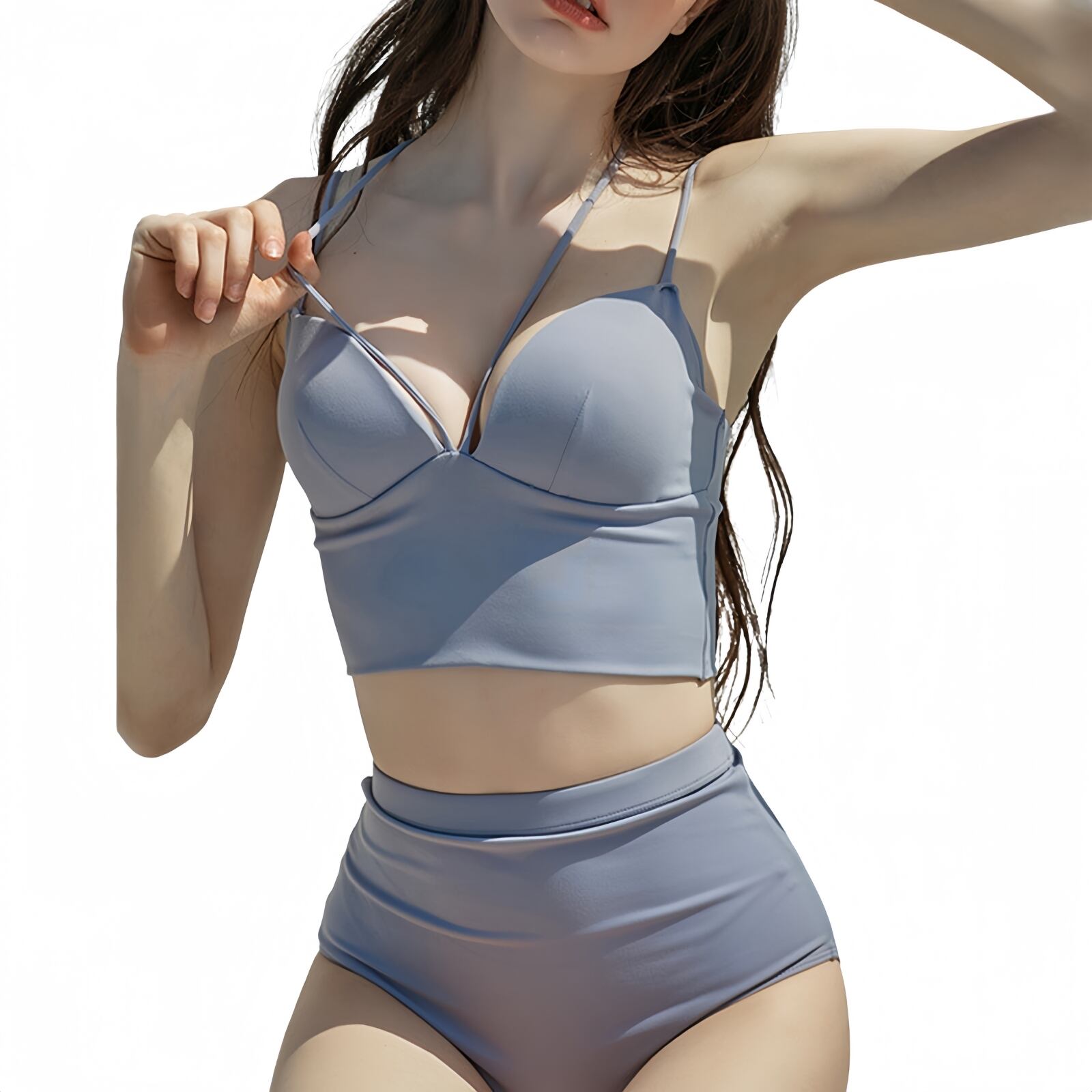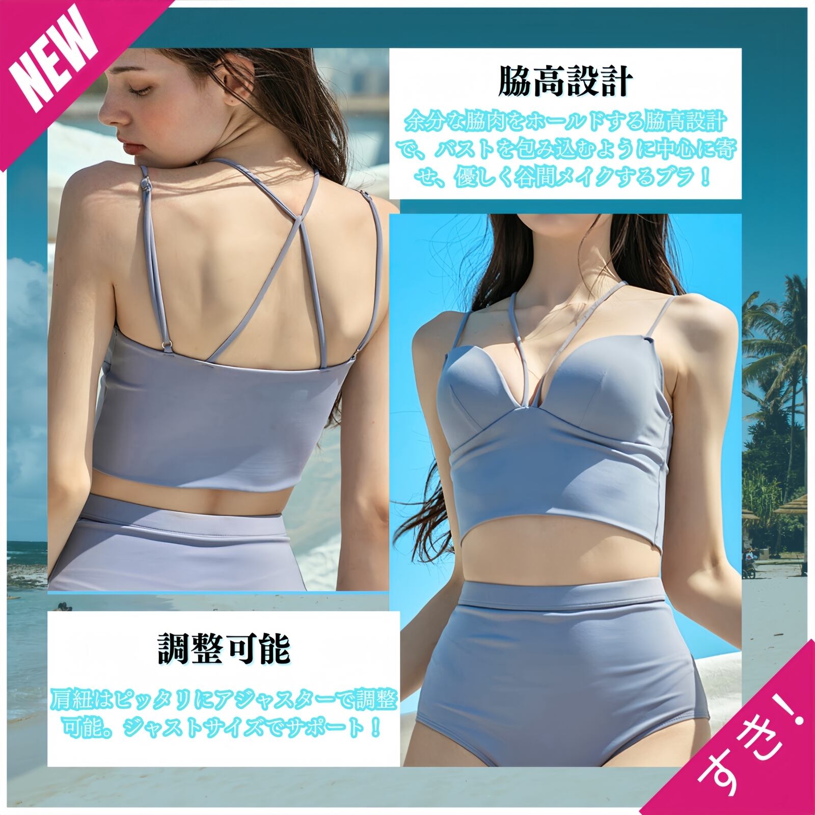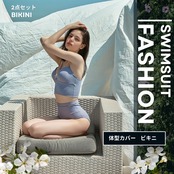 【 ファッション&ハイウエスト2点セット水着 】ビスチェ風プラ+ハイウエストのショートパンツ=胸のシルエットを強調するだけでなく、お腹のカーブも変える完璧な水着!余分な脇肉をホールドする脇高設計で、バストを包み込むように中心に寄せ、優しく谷間メイクするブラジャー!
