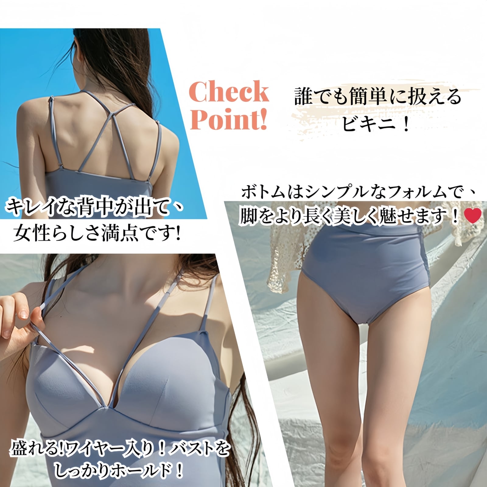 【 商品の仕様について4つの特徴 】①ブラは取り外し可能な厚さ10㎜~20㎜のパット付き。②高い速乾性,ポリエステル18%&スパンデックス82%で高い速乾性を実現。③盛れる!ワイヤー入り!バストをしっかりホールド!美バストを演出♪④露出度は高くありませんが、女性のセクシーな一面を表現できます!