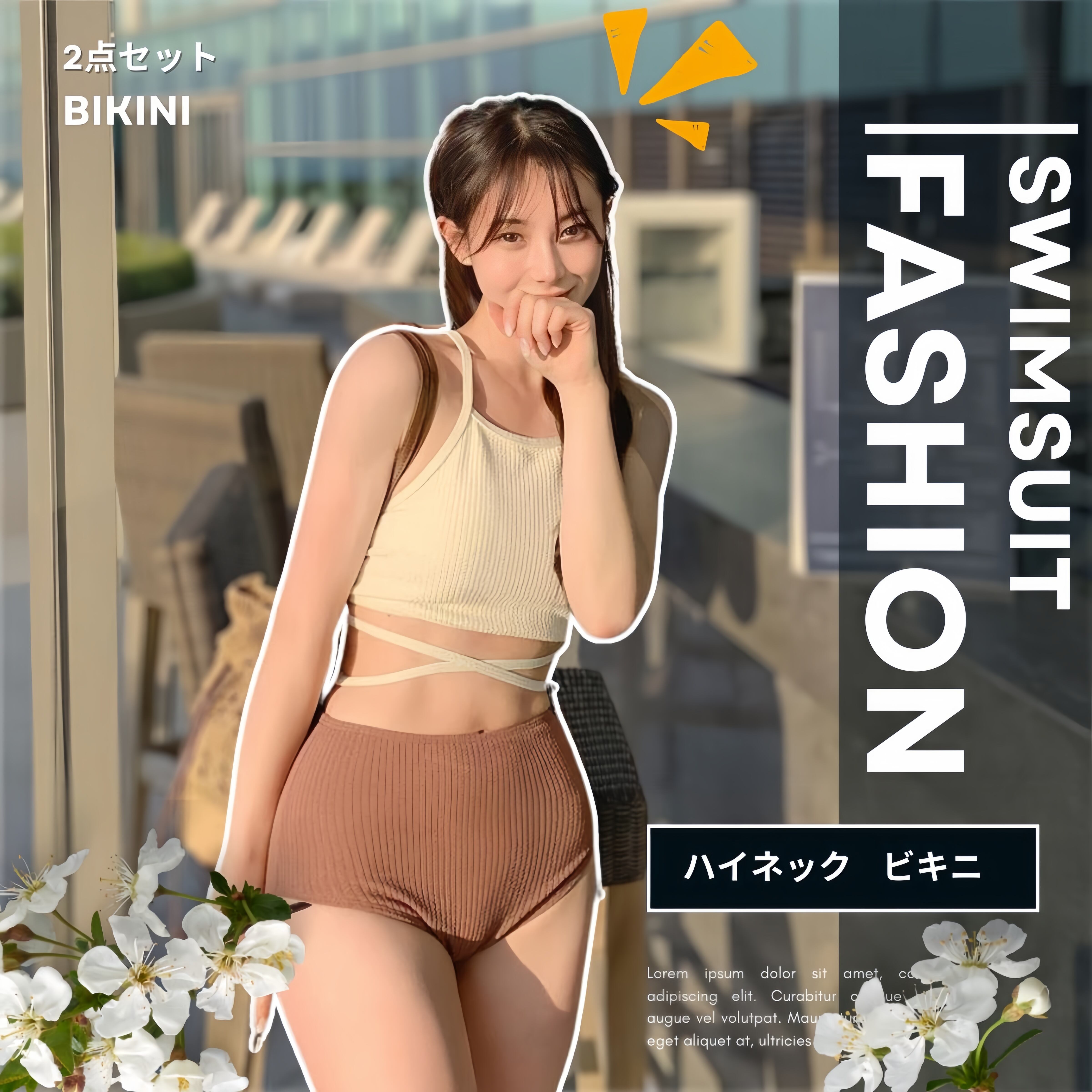 【 韓国ファッション2点セット水着 】ハイネックプラ+ショートパンツ2点セット水着,ハイネックビキニで露出は控えめに!背中をキレイに見せてくれるバックデザイン!かわいいだけでなく、露出も少ないのでリゾート旅行にはもってこいですし、ビーチを歩いたり、子どもたちと一緒にウォーターパークを楽しんだりするのにも最適です。