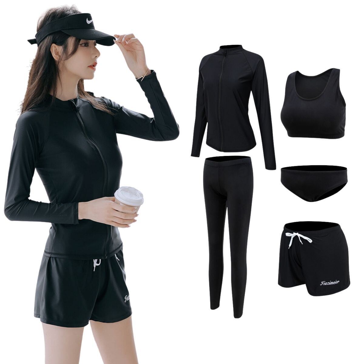 水着 レディース 5点セット フィットネス水着 長袖ラッシュガード スポーツブラ 体型カバー セパレート タンキニ オシャレ UVカット 接触冷感 水陸両用 ソフト肌触り 女性用 水着 | swimstar
