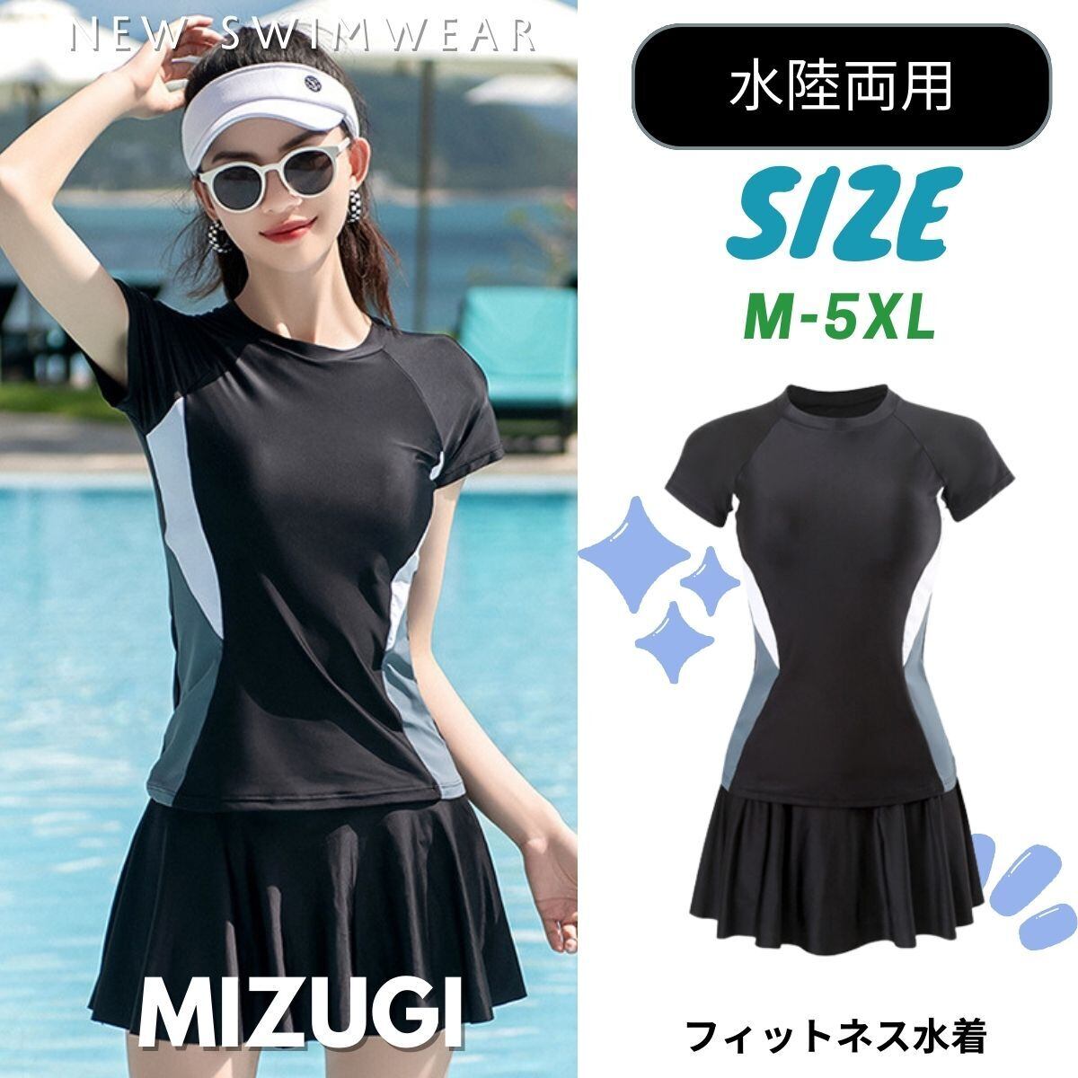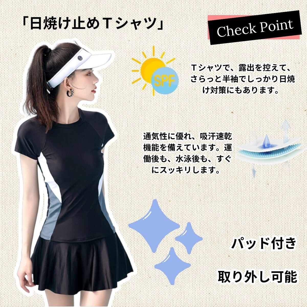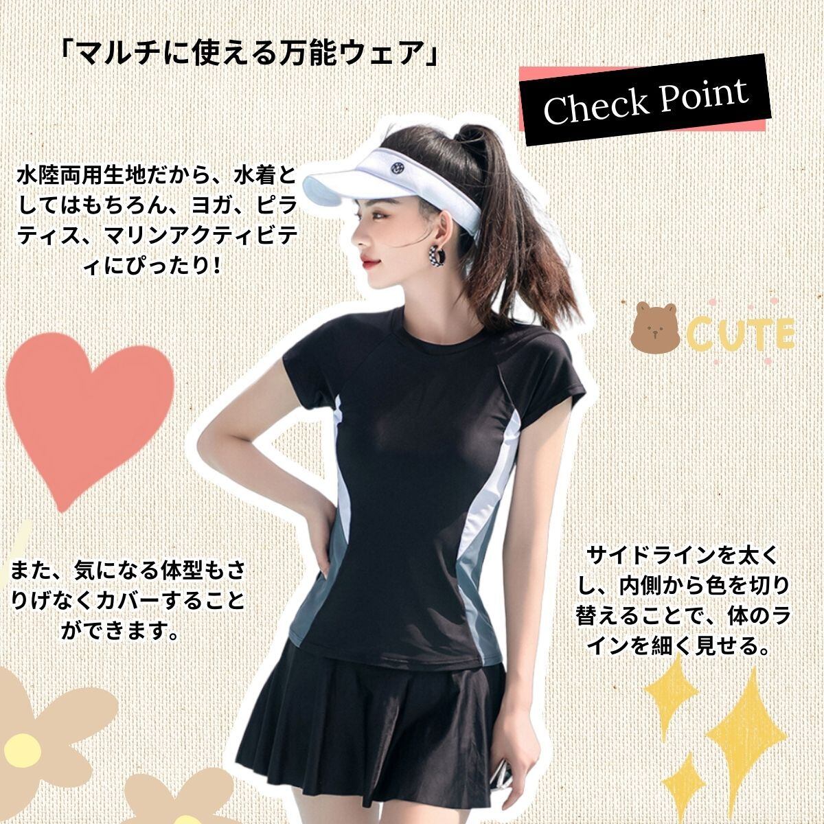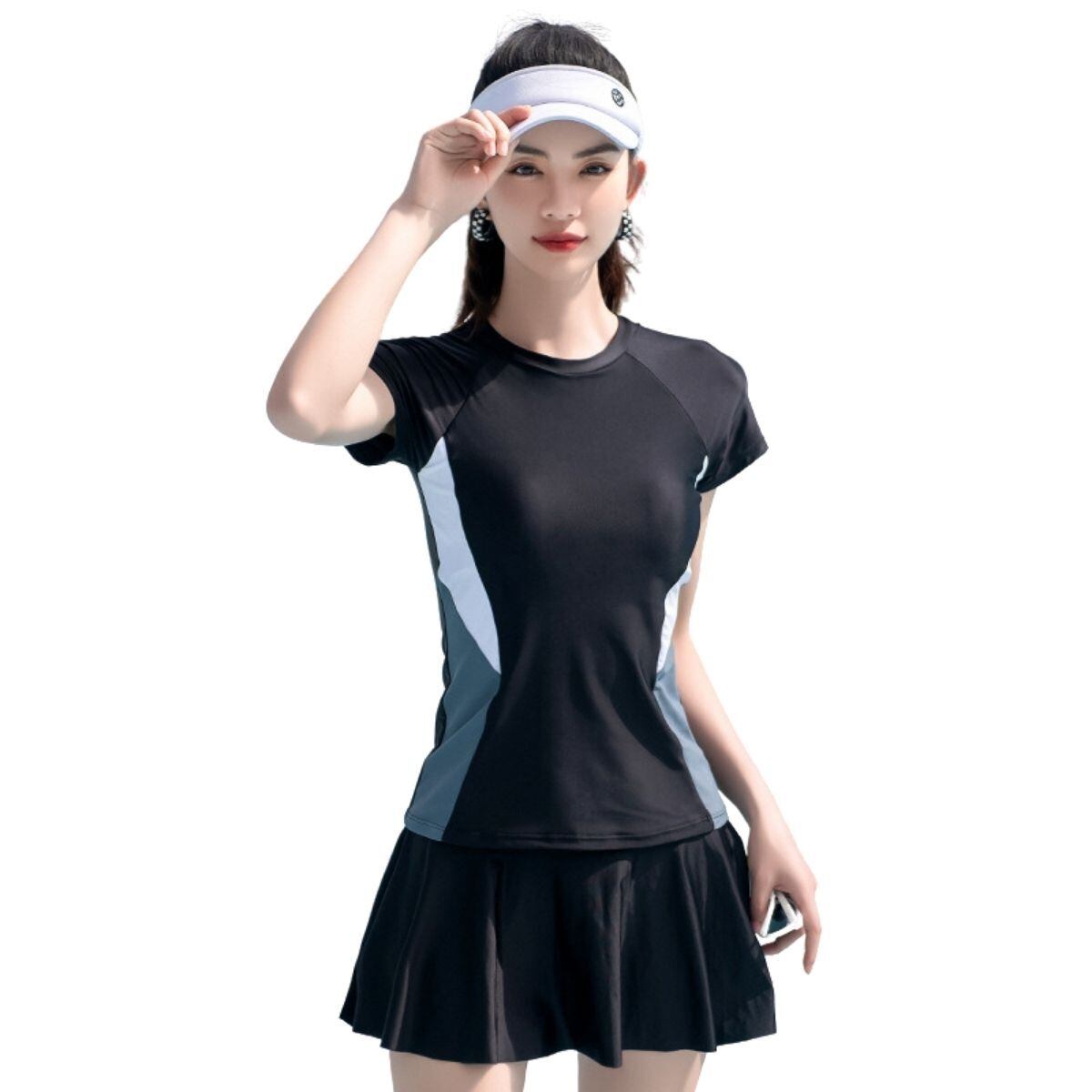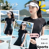 水着 レディース 体型カバー 2点セット タンキニ セパレート スポーティー水着 フィットネス水着 半袖ラッシュガード 水陸両用 パッド付き 上下セット スカート スポーツ風 学生 20代 練習用 速乾性 | swimstar