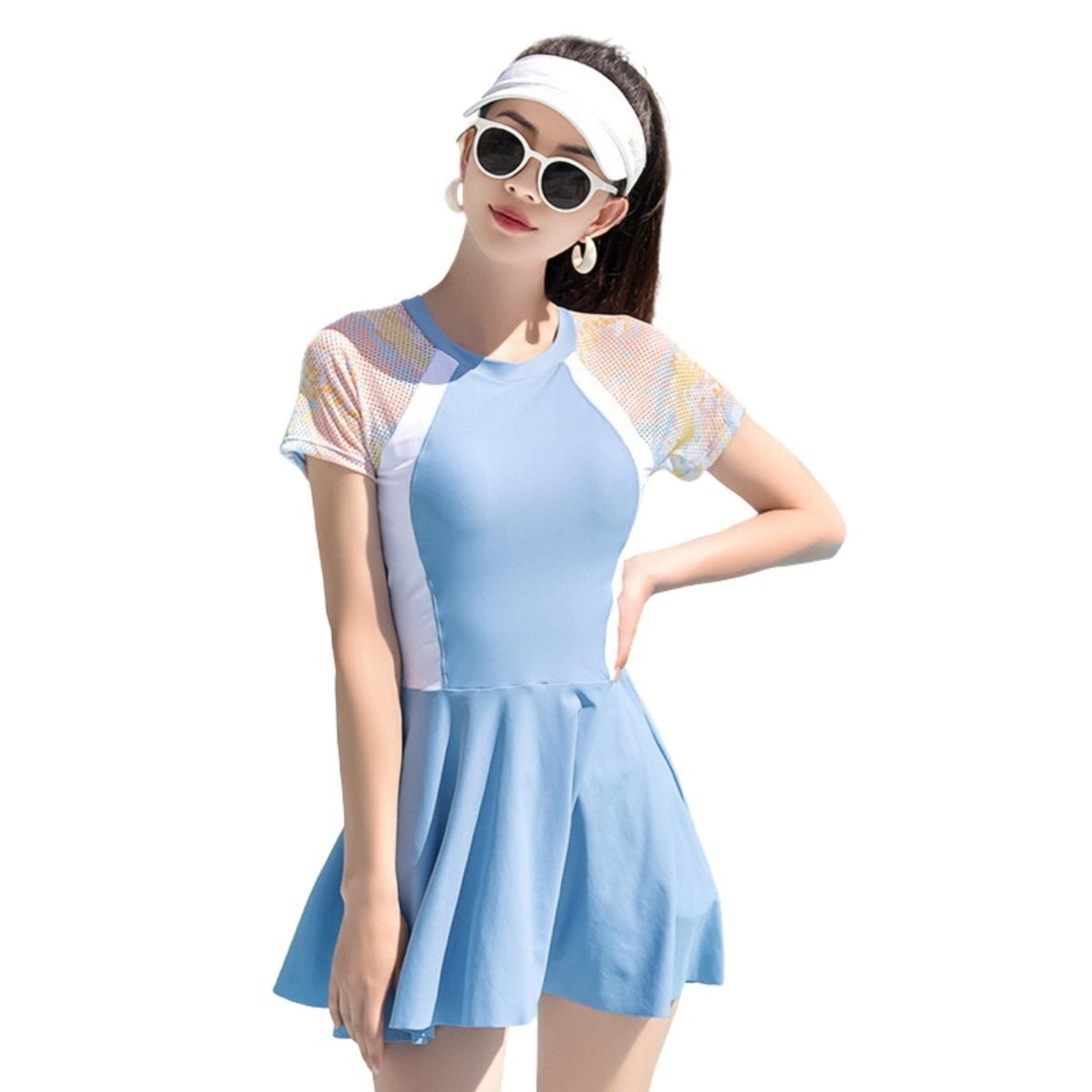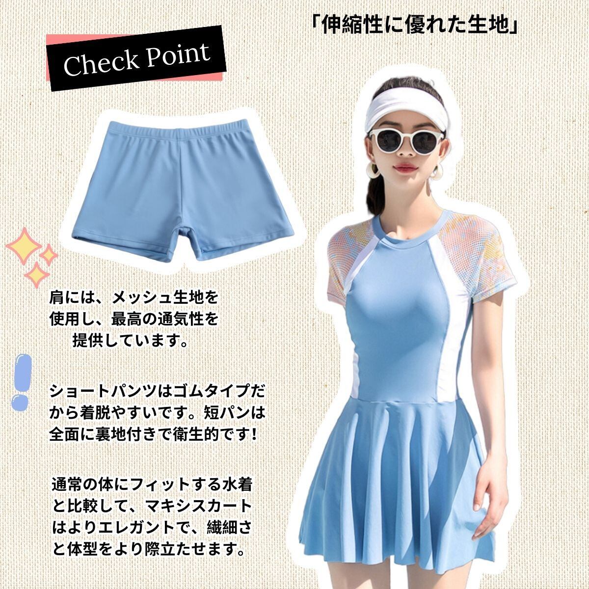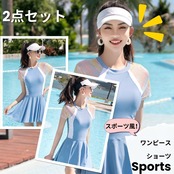 レディース水着 ワンピース 半袖 体型カバー かわいい 2点セット ショートパンツ スポーツ風 水着 海 露出控えめ ソフト肌触り 夏 美しさ 女性 おしゃれ 泳ぐ 海辺 温泉 水陸両用 大きいサイズ | swimstar