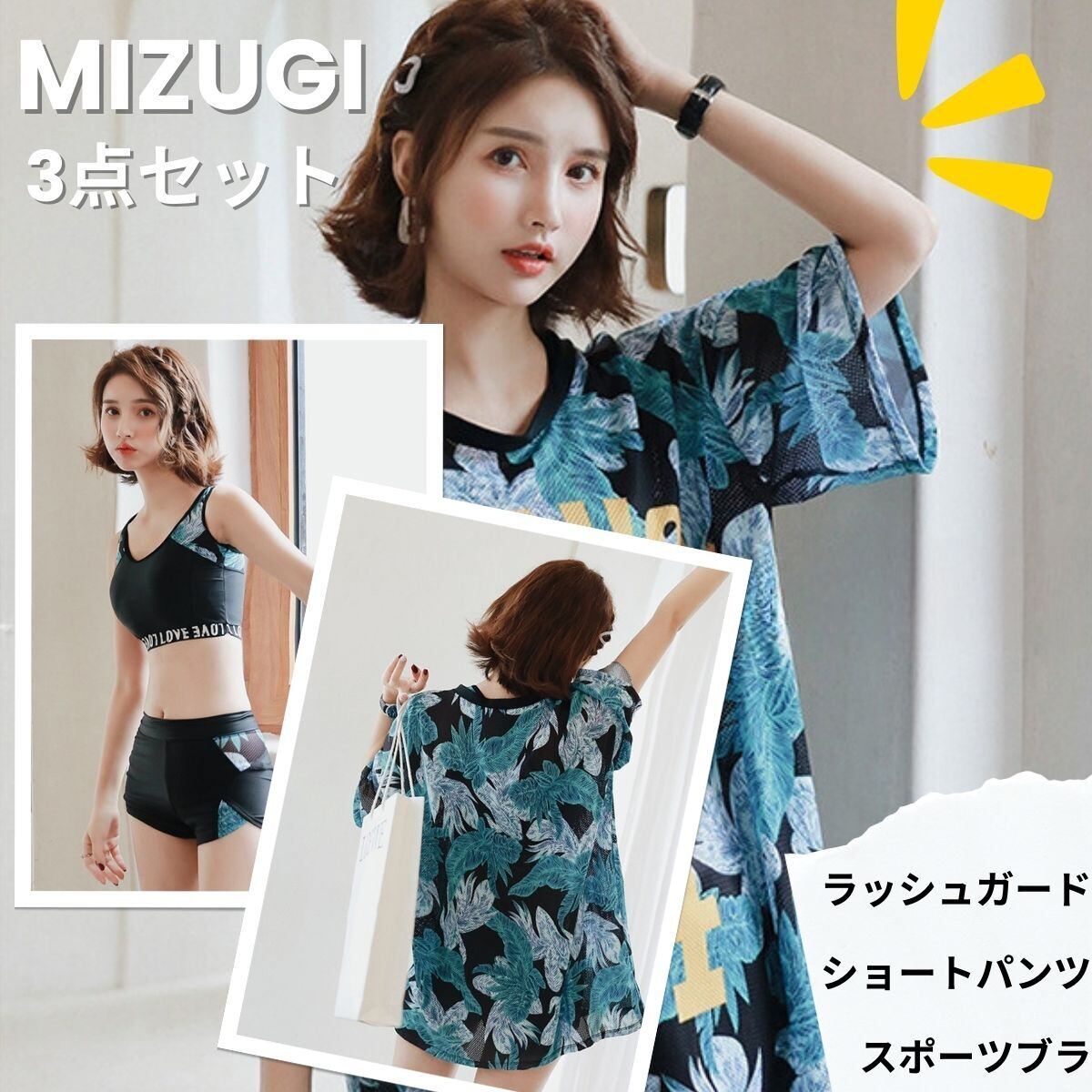 レディース 水着 タンキニ フィットネス水着 体型カバー 着瘦せ 水着 3点セット ラッシュガード スポーツブラ ショートパンツ UVカット スポーツ風 水着 高校生 スイムウエアー SWIMWAER 韓国水着 | swimstar