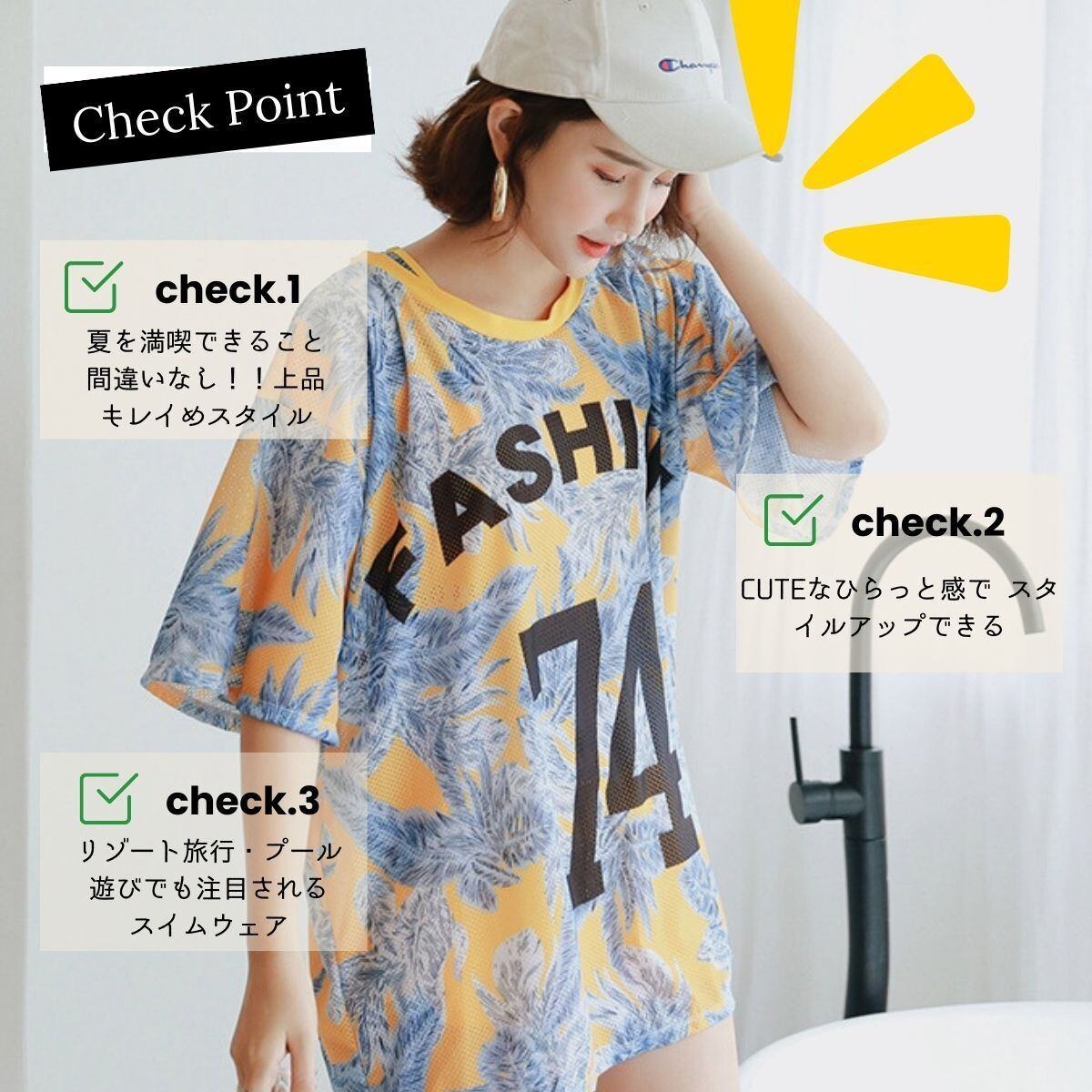 薄くて通気性の高い素材を使用しているので、暑い夏でも、不快感を感じません。夏に出かけるとき時は涼しく感じて気分も爽やかになります。生地はとても柔らかく、軽く、着心地は快適です。プール・温泉・砂浜・海辺や海水浴などの様ざまなシーンに使うことができ、水陸両用のファッションな水着です。
