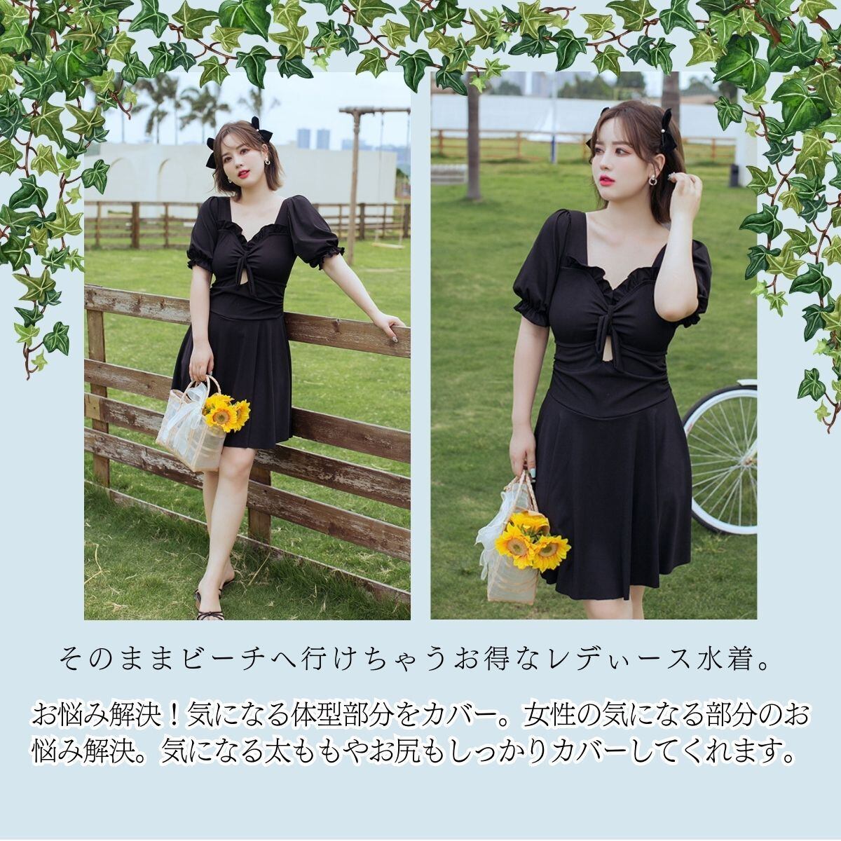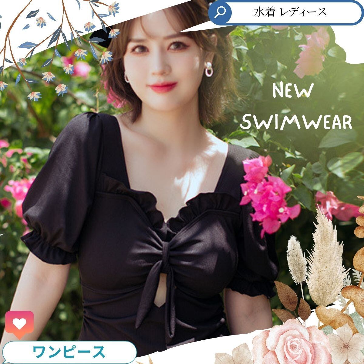 ワンピース レディース 水着 体型カバー 大きいサイズ 着瘦せ 水着 パフスリーブ 半袖 バックシャン ウエストマーク ハイウエスト スカート 水着 温泉水着 旅行水着 ぽっちゃり おしゃれ 可愛い 水泳服 スイムウエアー | swimstar