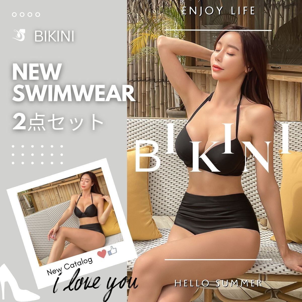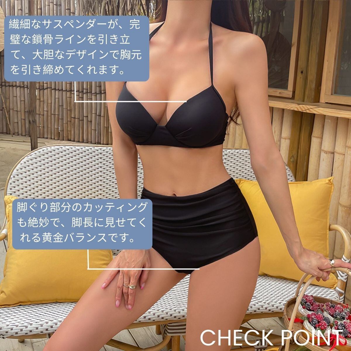 ビキニ レディース 水着 ホルターネック 2点セット セパレート 上下セット ストラップ ハイウエスト バックシャン ギャザー お洒落 可愛い セクシー 大人水着 温泉水着 旅行水着 海水浴 スイムウエアー bikini SWIMWAER | swimstar