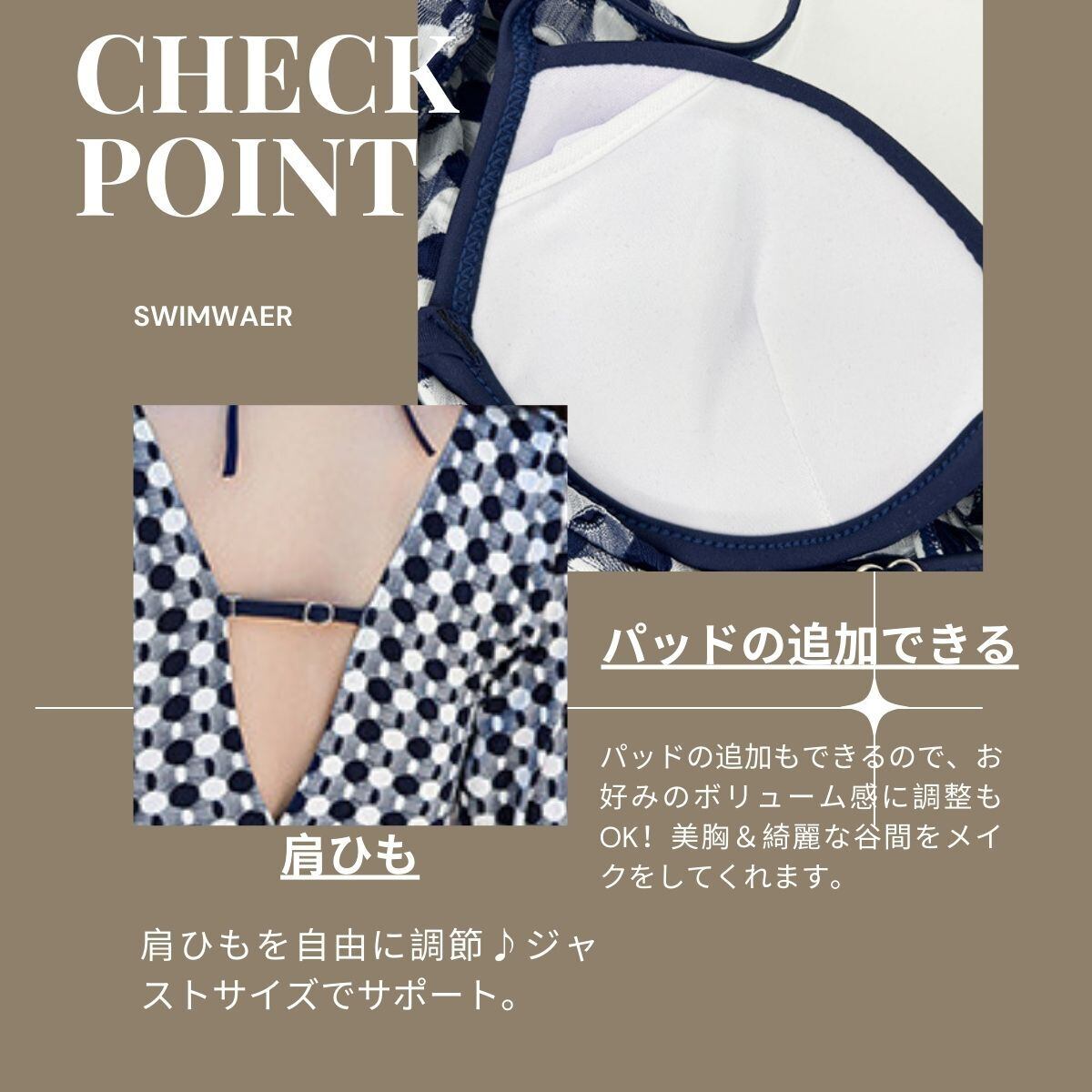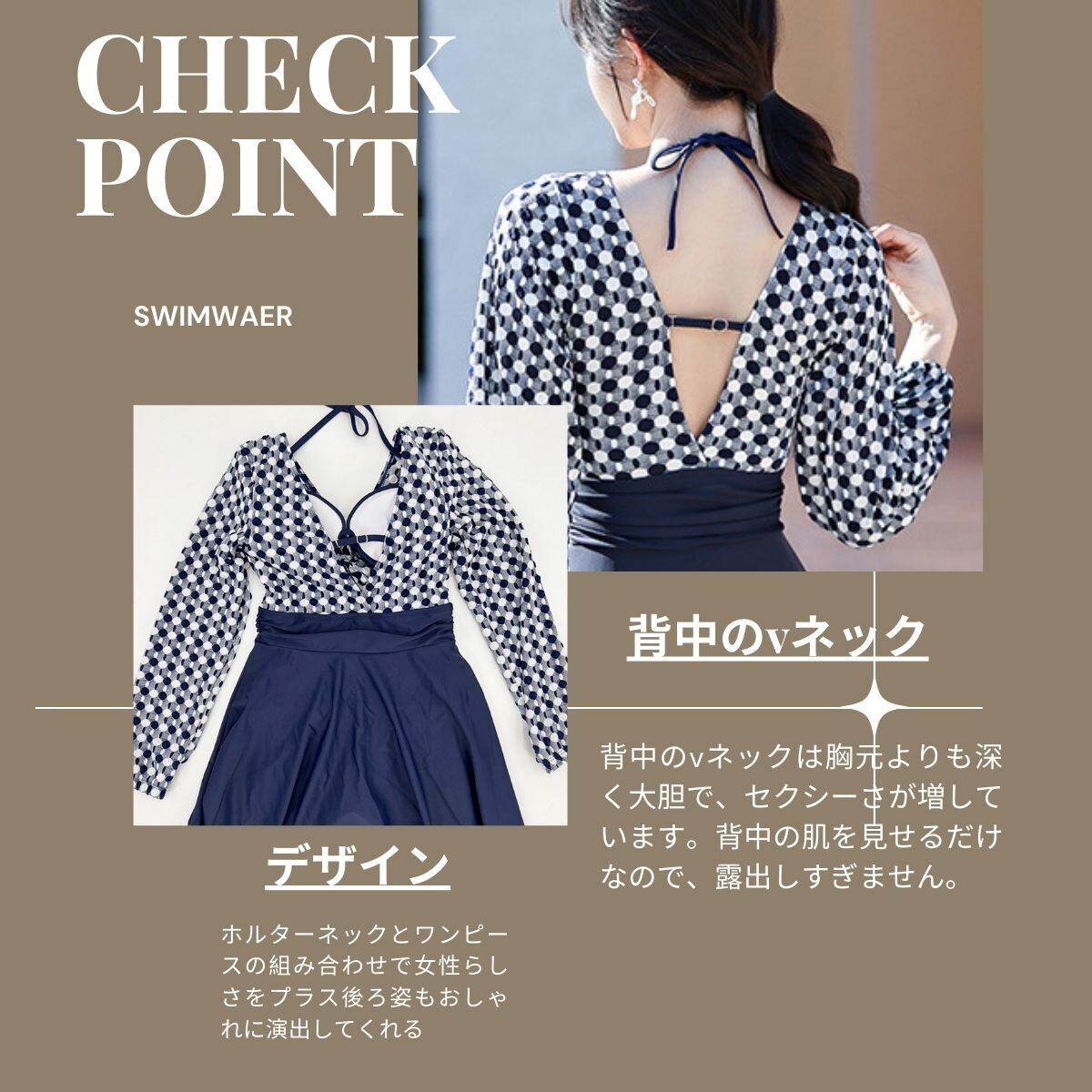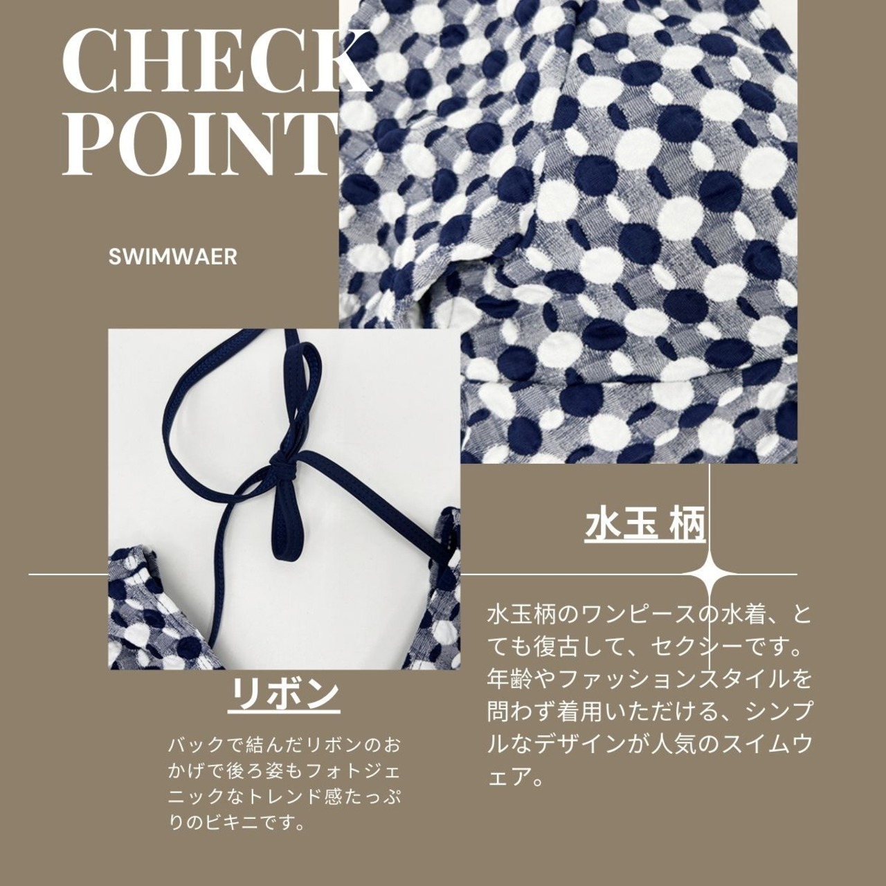 Vネックでデコルテをきれい見せ。大胆すぎない肌見せてセクシーになりすぎない。水玉柄のワンピースの水着、とても復古して、セクシーです。背中のvネックは胸元よりも深く大胆で、セクシーさが増しています。背中の肌を見せるだけなので、露出しすぎません。