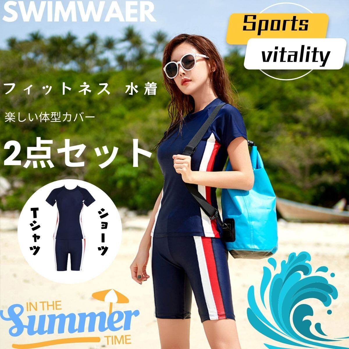 フィットネス 水着 レディース セパレート 上下セット 半袖ラッシュガード ショーツ 2点セット タンキニ 体型カバー 大きいサイズ 水着 競泳水着 女性用 スポーツ水着 露出控えめ ソフト肌触り 海水浴 スイムウェア SWIMWAER | swimstar