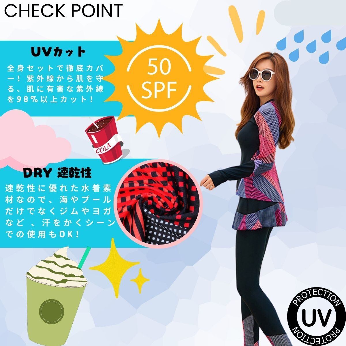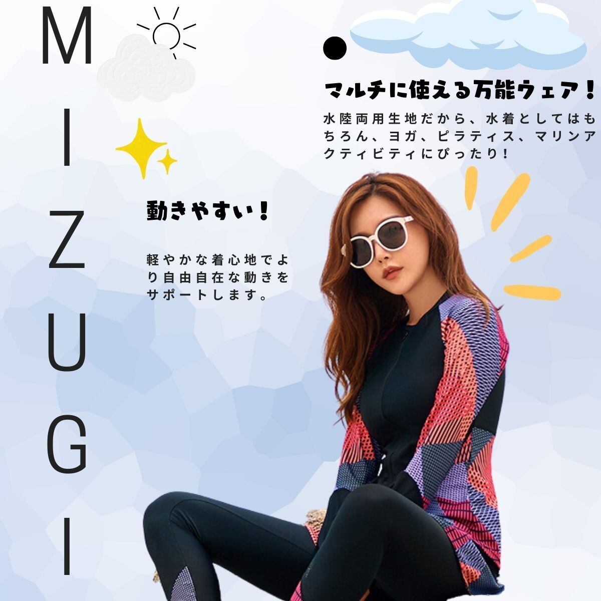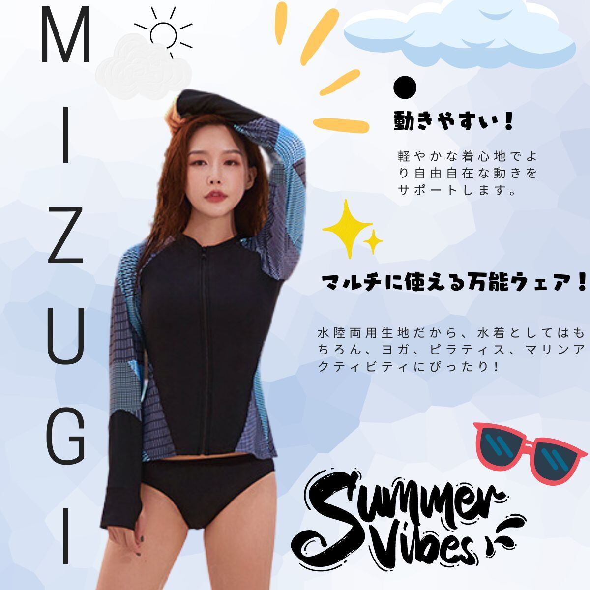 【体型カバー】ラッシュガードはこだわりにこだわった無地と柄の切り替えラインで、着た瞬間魔法のように細く見えちゃう、着痩せ効果が期待できる。4方向へのストレッチ性でヨガやピラティスにも大活躍優れた吸汗速乾で汗をかいてムレやベタつきを抑えてサラッと快適な着心地が続きます。