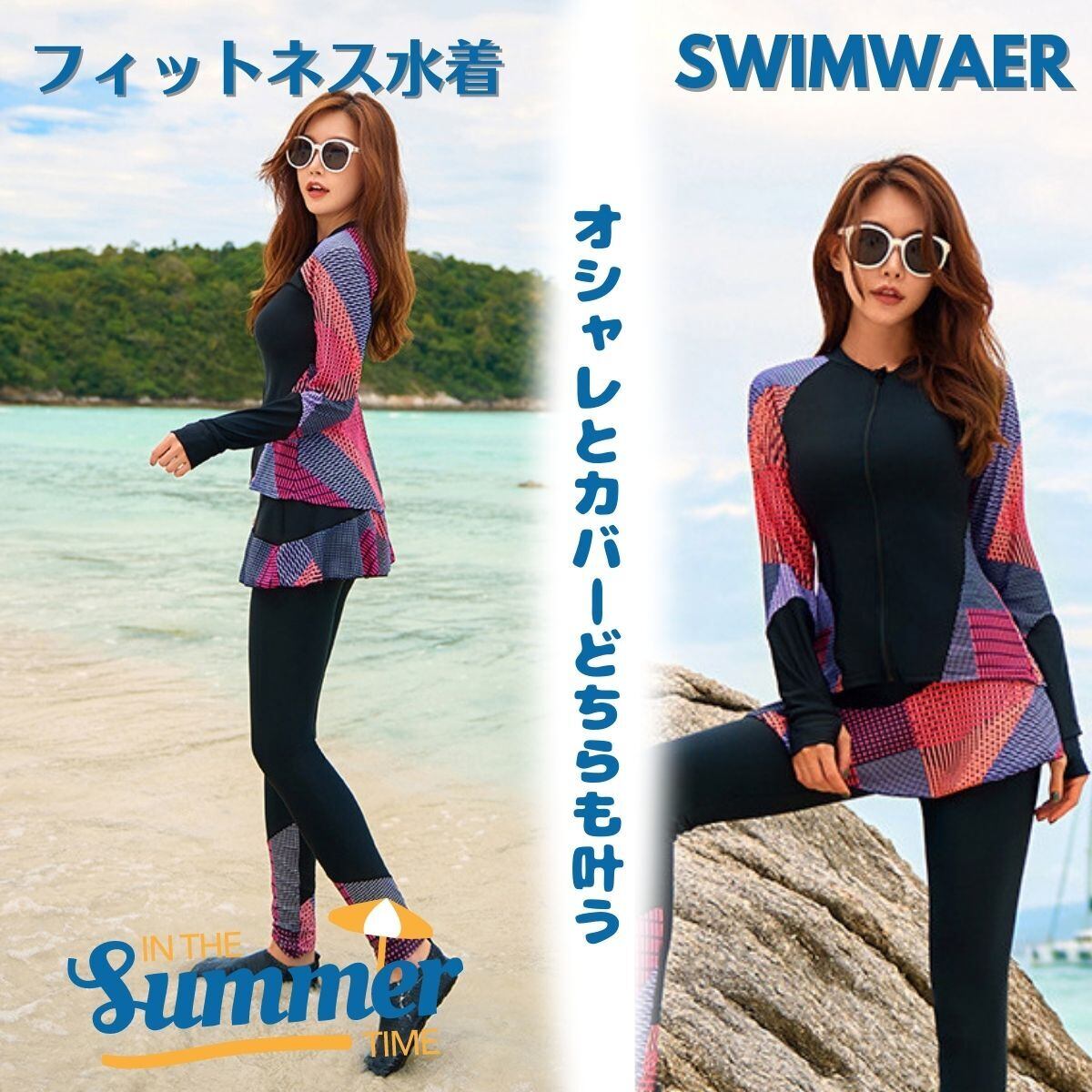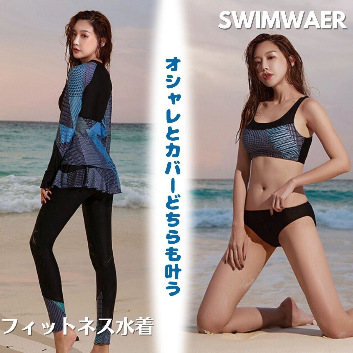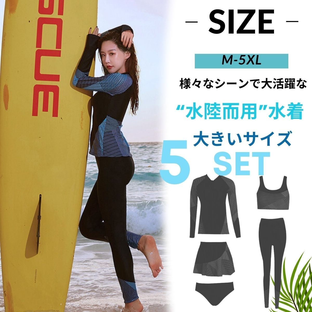 水着 レディース 体型カバー 5点セット フィットネス水着 長袖ラッシュガード セパレート ショートパンツ タンキニ UVカット 接触冷感 水陸両用 ソフト肌触り 女性用 体型カバー スイムウエア | swimstar