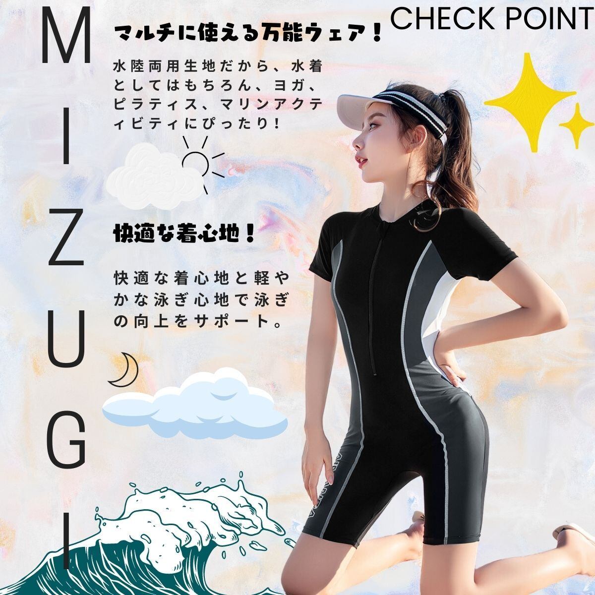 フィットネス レディース 水着 ワンピース 半袖 一体型 前開き 水着 体型カバー 大きいサイズ スポーツ 女性用ワンピース水着 UVカット 接触冷感 水陸両用 ポーティー 水着 スイムウエア | swimstar