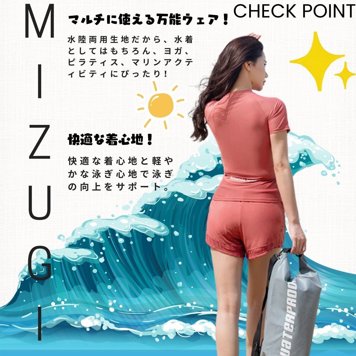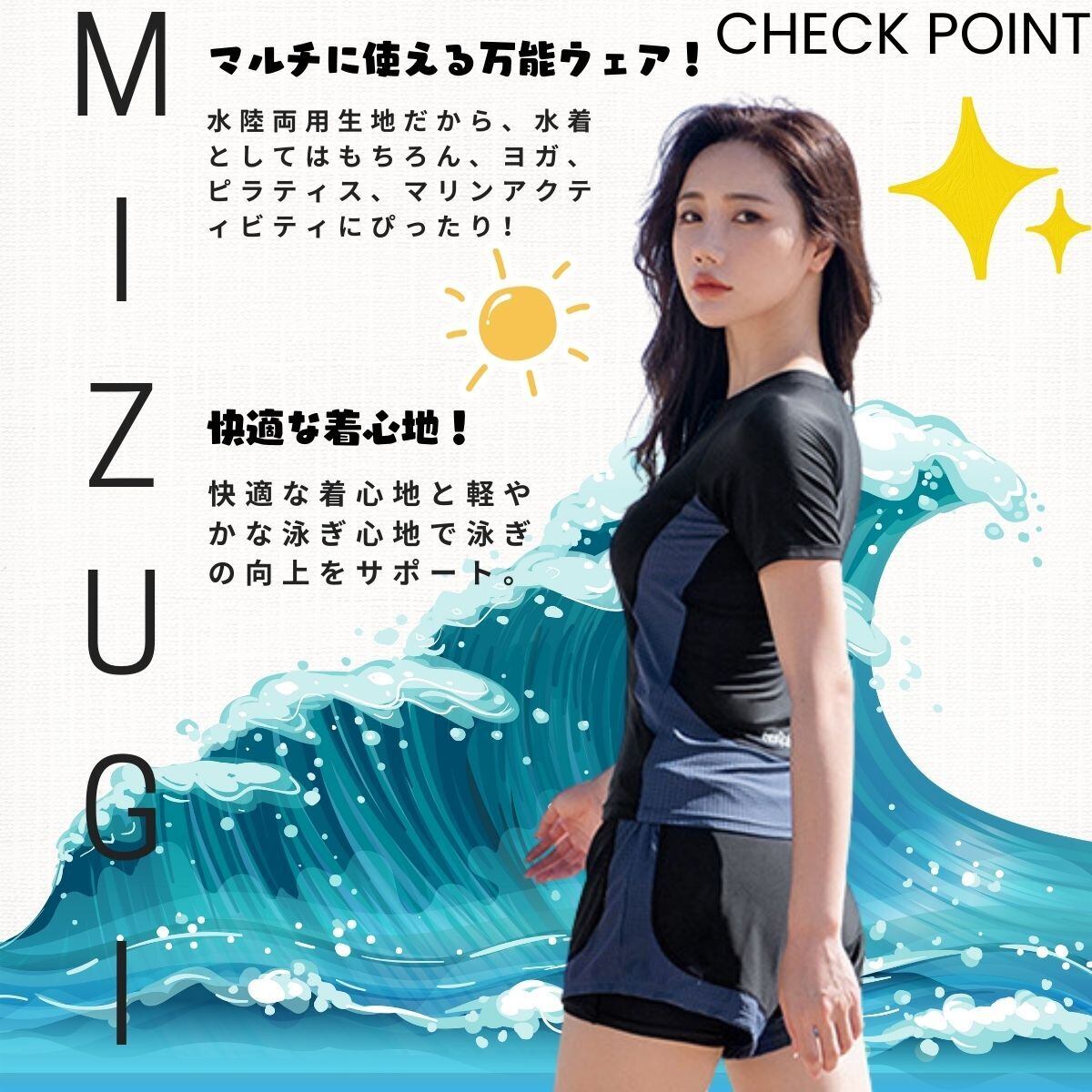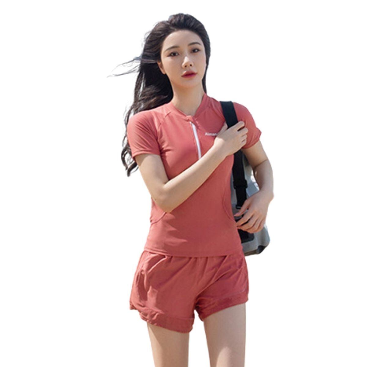 フィットネス 水着 レディース 前開き セパレート 2点セット 半袖 Tシャツ ショーツ 体型カバー 大きいサイズ タンキニ 練習水着 UVカット 露出控えめ ソフト肌触り 水陸両用 スポーツ 水着 スイムウエア | swimstar