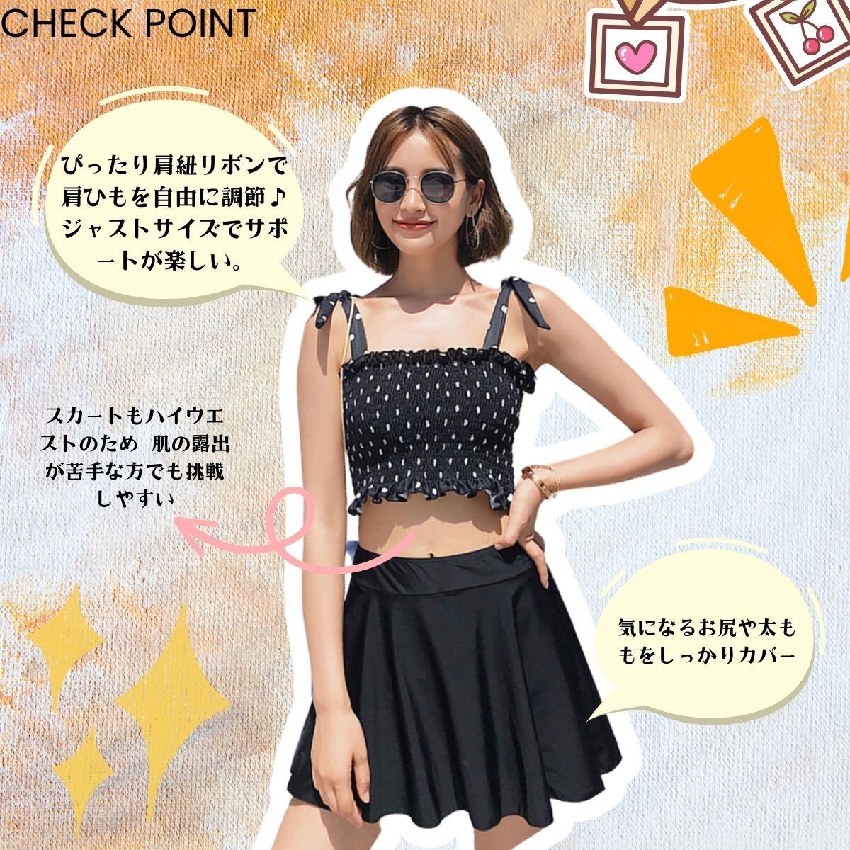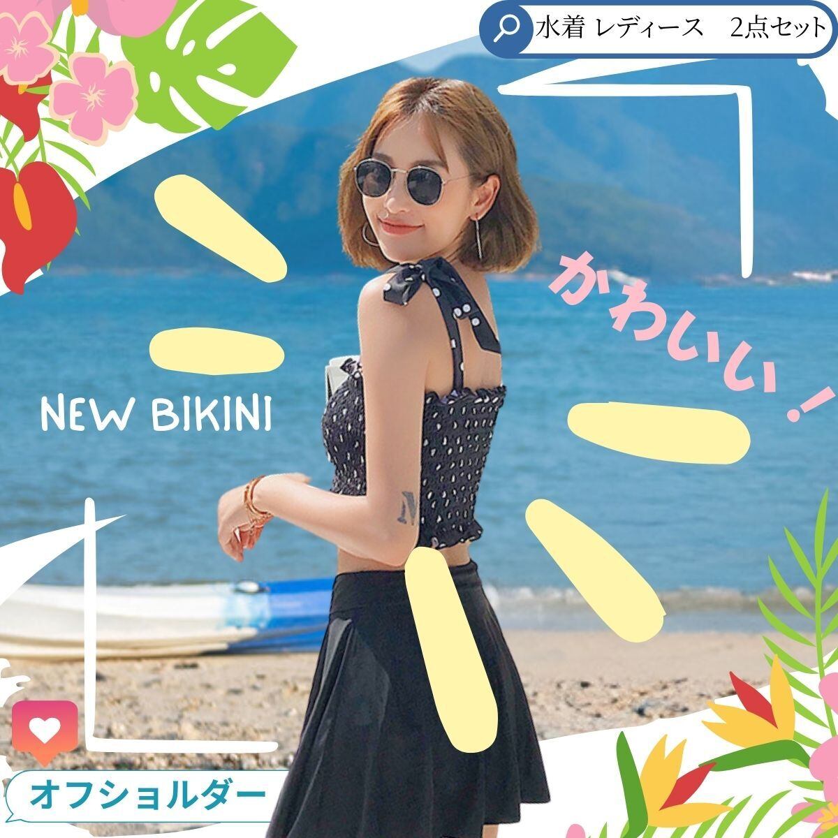 水着 レディース オフショルダー ビキニ セパレート タンキニ 水着 ハイウエスト スカート 体型カバー 水着 バックフリル ドット 無地 露出控えめ 温泉水着 かわいい オシャレ 20代 30代 40代 ママ水着 夏 海 | swimstar
