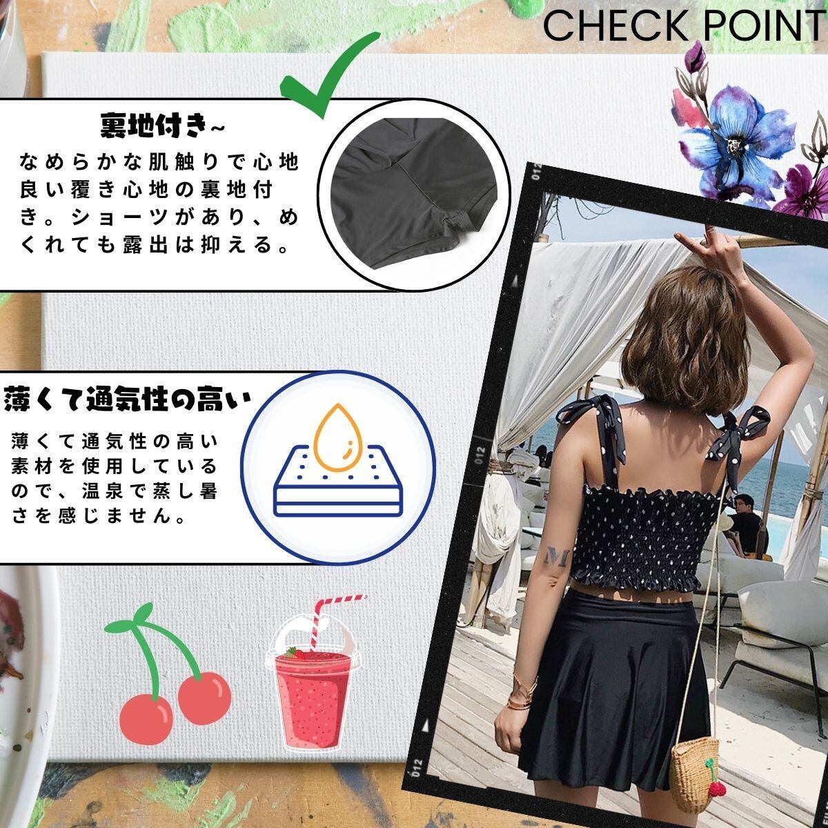 なめらかな肌触りで心地良い覆き心地の裏地付き。一体型のデザインで、露出の悩みがありません!肌に優しく、伸びる縫い目 肌にやさしいフラットシーマ縫製を採用。薄くて通気性の高い素材を使用しているので、温泉で蒸し暑さを感じません。
