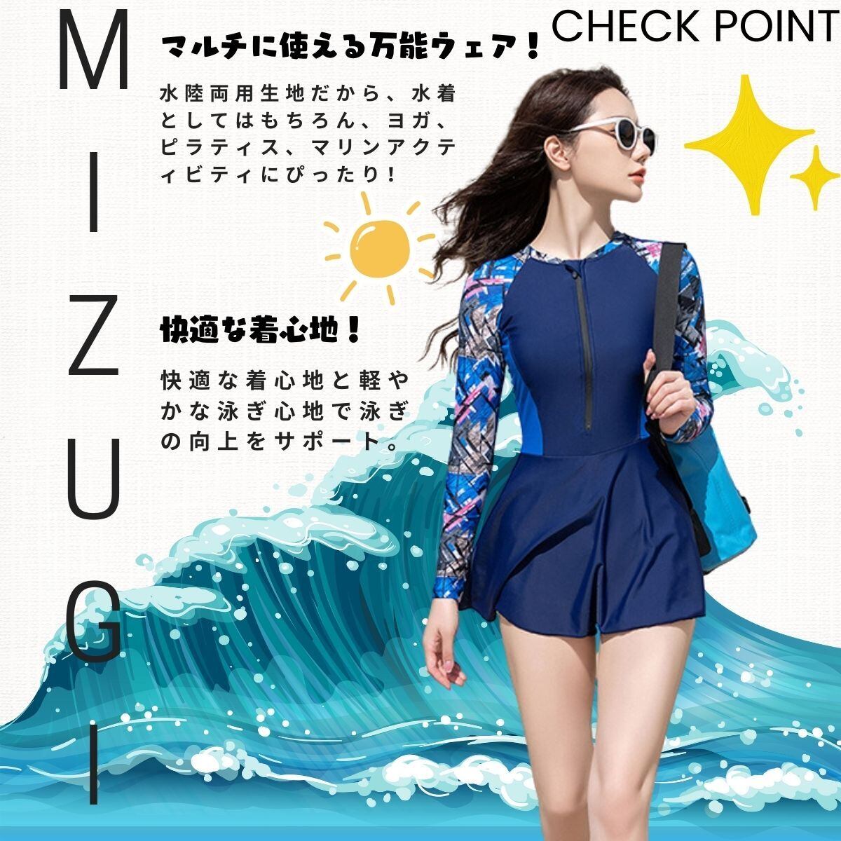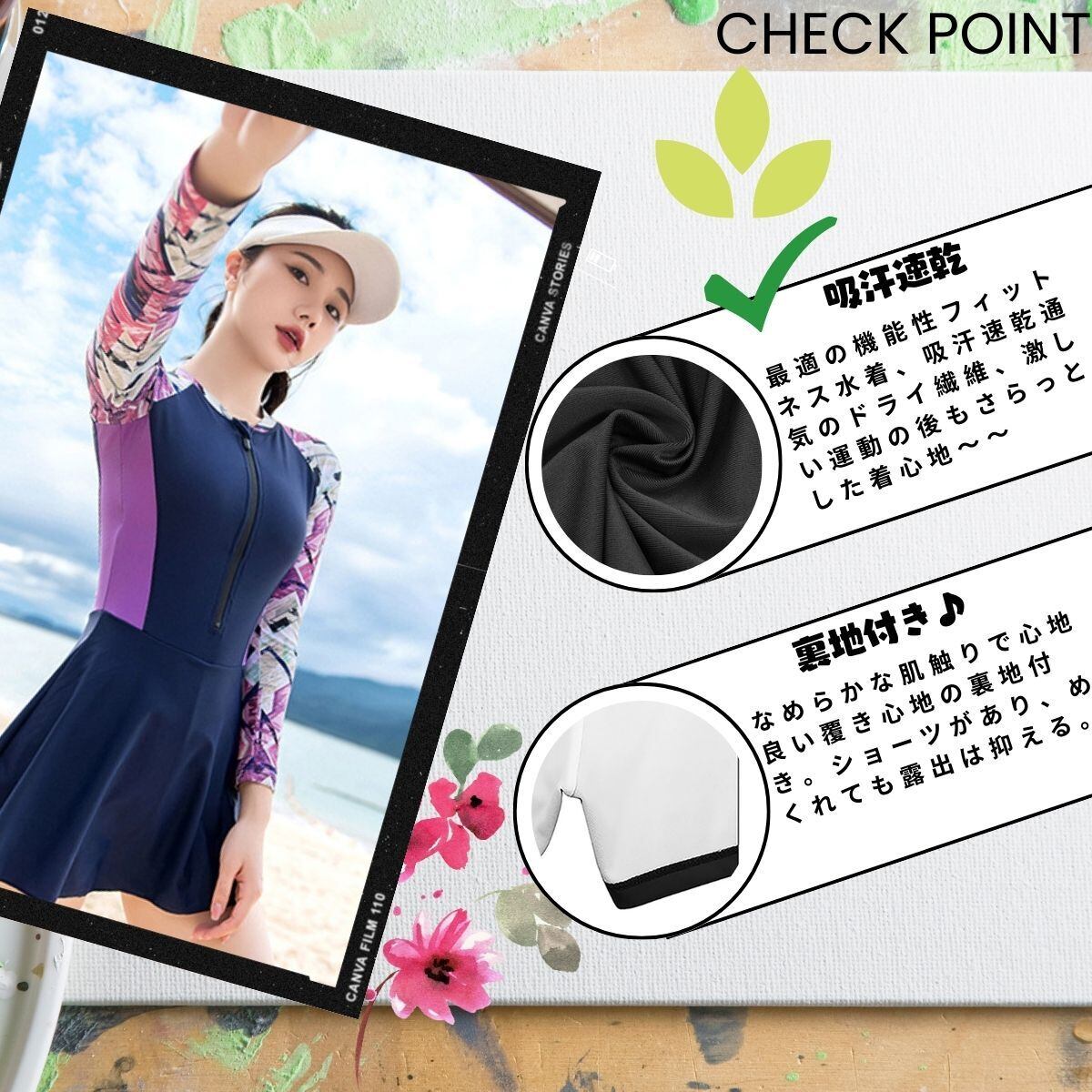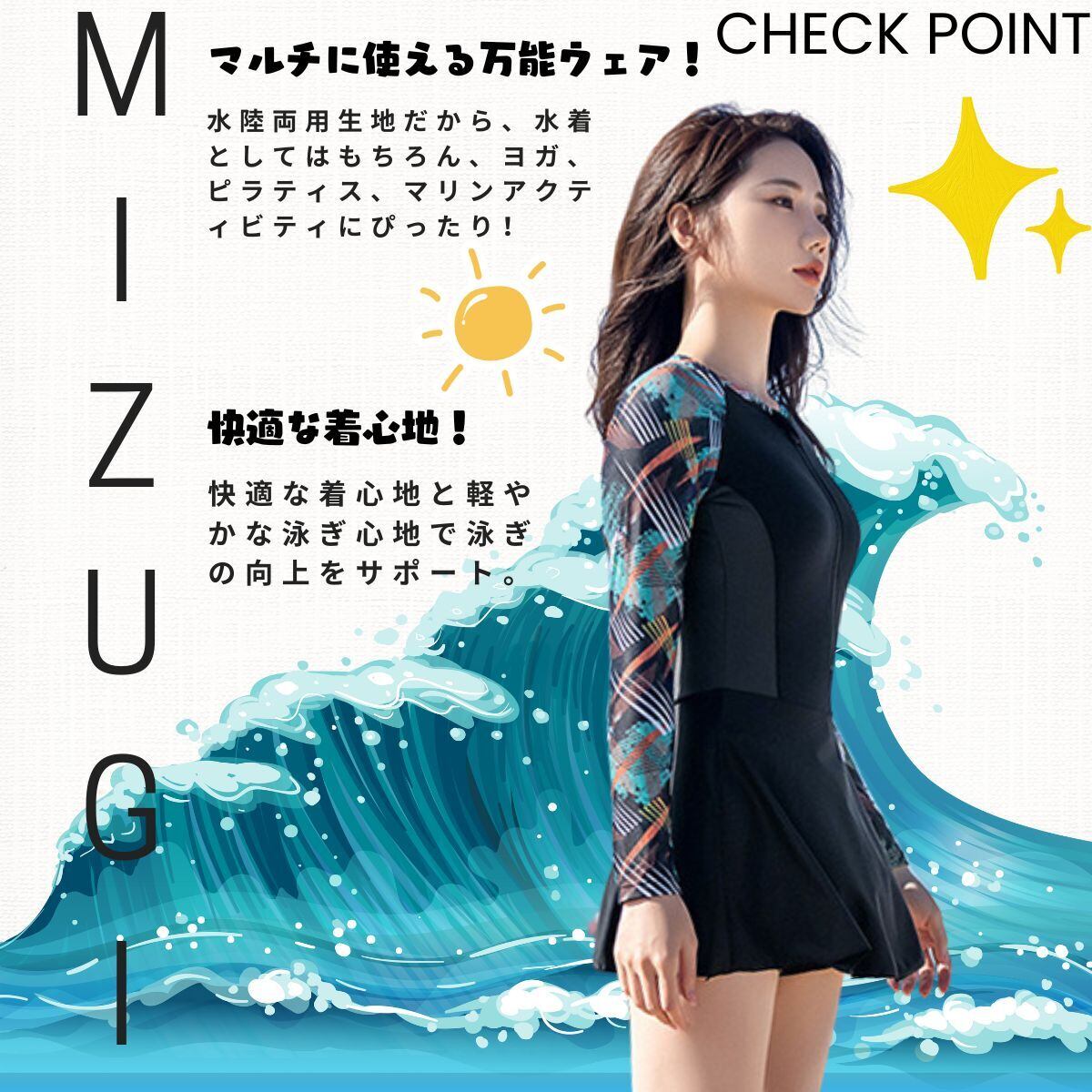 フィットネス レディース 水着 ワンピース 長袖 水着 オールインワン 前開き 体型カバー 大きいサイズ 競泳水着 UVカット 露出控えめ 接触冷感 水陸両用 ポーティー 水着 オシャレ スイムウエアー SWIMWAER 泳ぐ 海辺 | swimstar