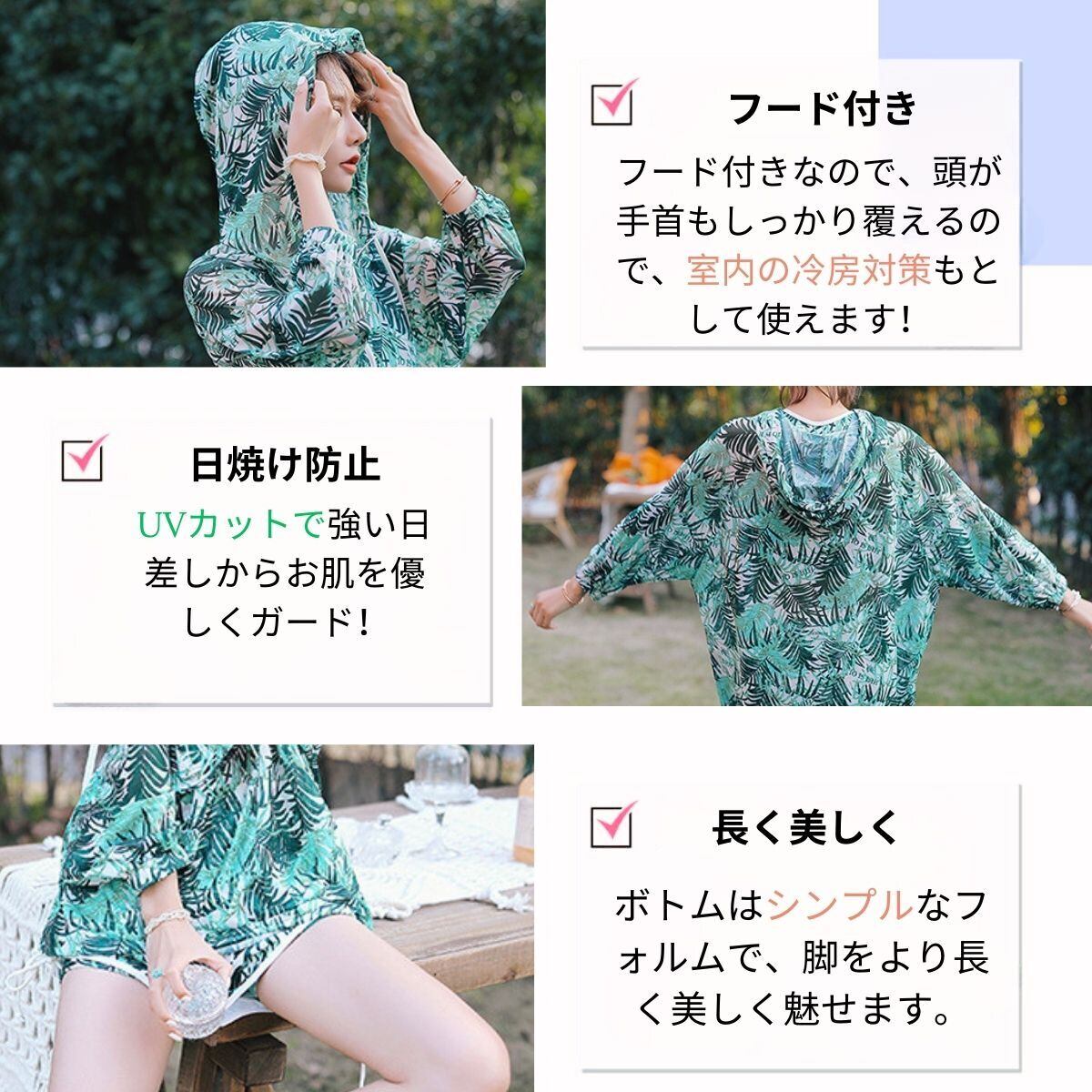 ビーチや温泉に行くなど使うだけでなく、普通着としても大丈夫です。 アールシーズンで使用可能です。プール・温泉・砂浜・海辺や海水浴などの様ざまなシーンに使うことができ、水陸両用のファッションな水着です。