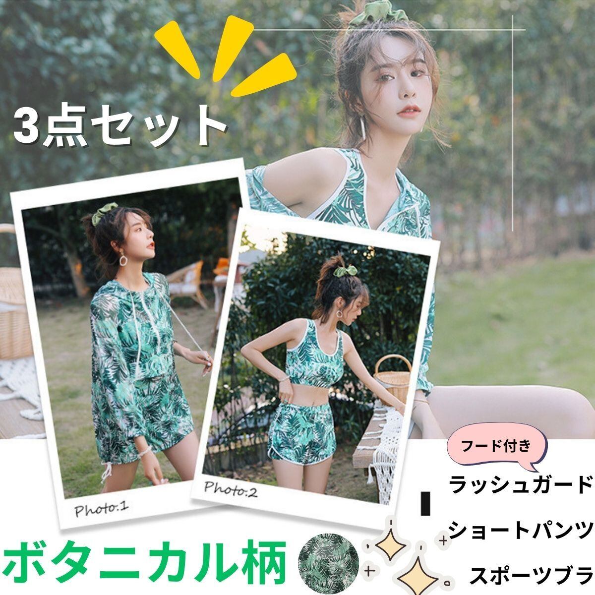 水着 レディース タンキニ フィットネス水着 ボタニカル柄 セパレーツ 3点セット ラッシュガード ショートパンツ スポーツブラ おしゃれ 体型カバー 日焼け防止 スポーツ 温泉 旅行 高校生 20代 スイムウエアー | swimstar