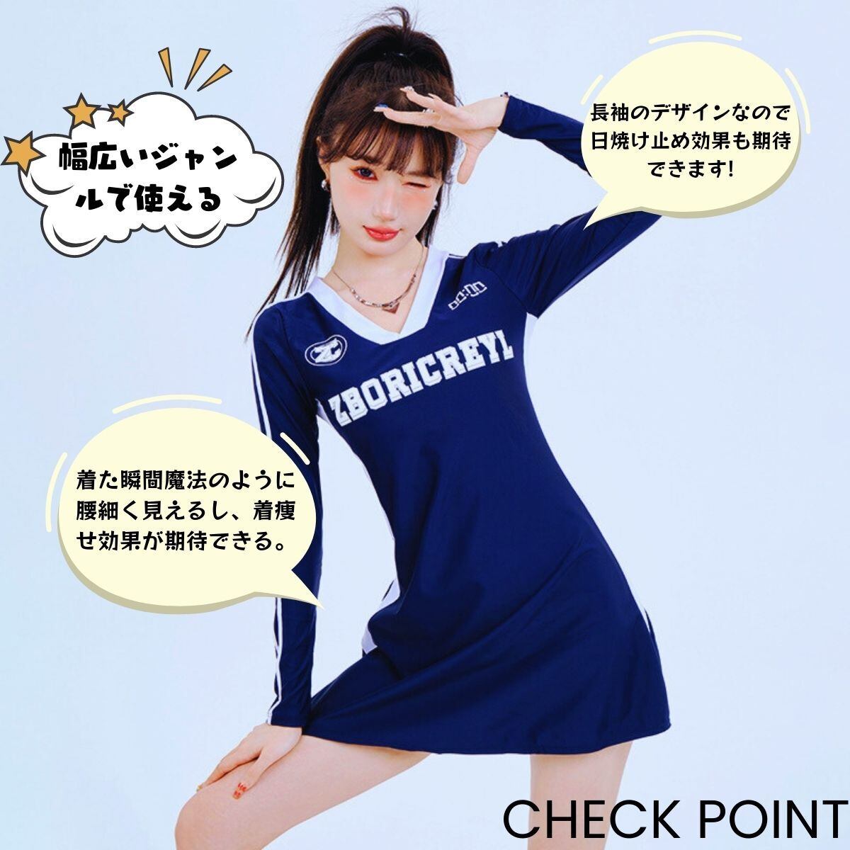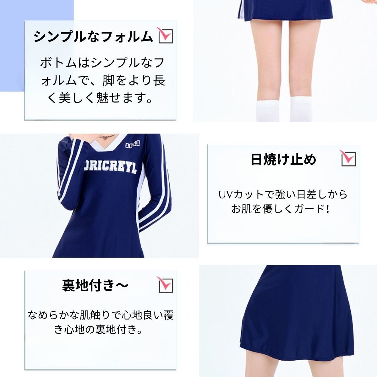 ウエストマークのデザインは、体のラインをすっきりさせ、女性らしさを演出し、ウエストをスリムにしてくれます。肌の露出をおさえた水着で細見え効果アップ!気になるお尻や太ももをしっかりカバーし、露出をとことん抑えたい方へ!長袖のデザインなので日焼け止め効果も期待できます!