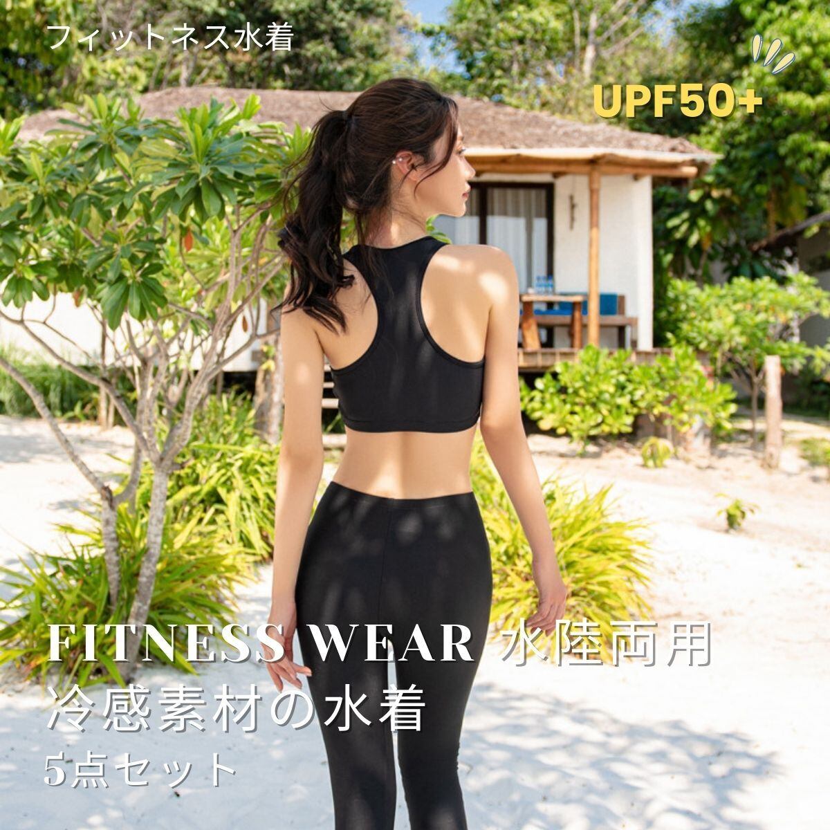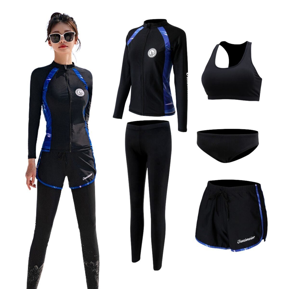 水着 レディース 長袖水着 体型カバー 5点セット フィットネス水着 ラッシュガード パンツ レギンス ブラ ショーツ UVカット 接触冷感 水陸両用 ソフト肌触り 女性用 サーフィン スポーツ ペア カップル 水着 | swimstar