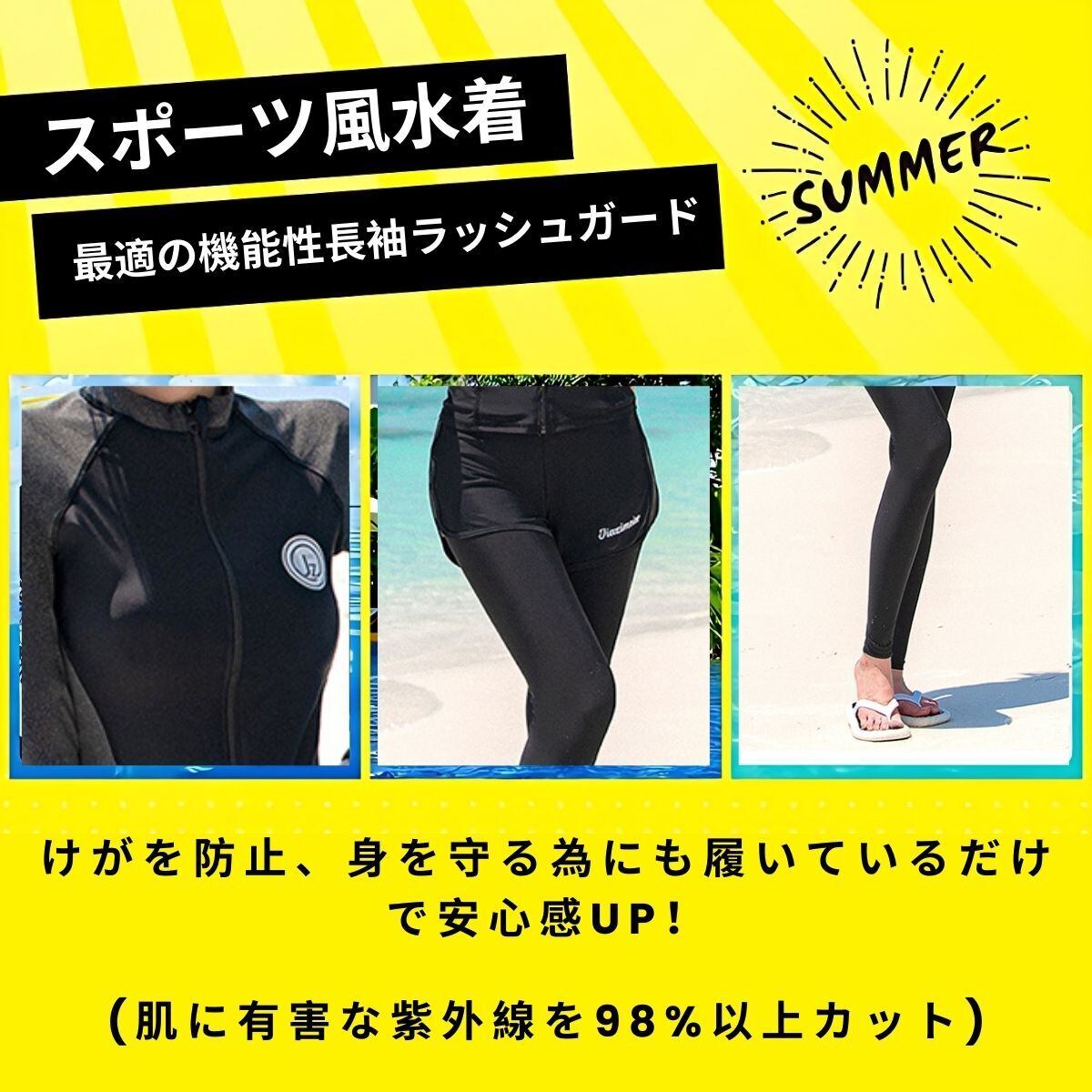 【UVカット】UPF50+生地(肌に有害な紫外線を98%以上カット)使用しているため、「着るだけ」で日焼け予防を完全に実現。足首丈レギンスは水を通さず、肌にベタつきにくく、虫刺されやクラゲ対策にも。けがを防止、身を守る為にも履いているだけで安心感UP!
