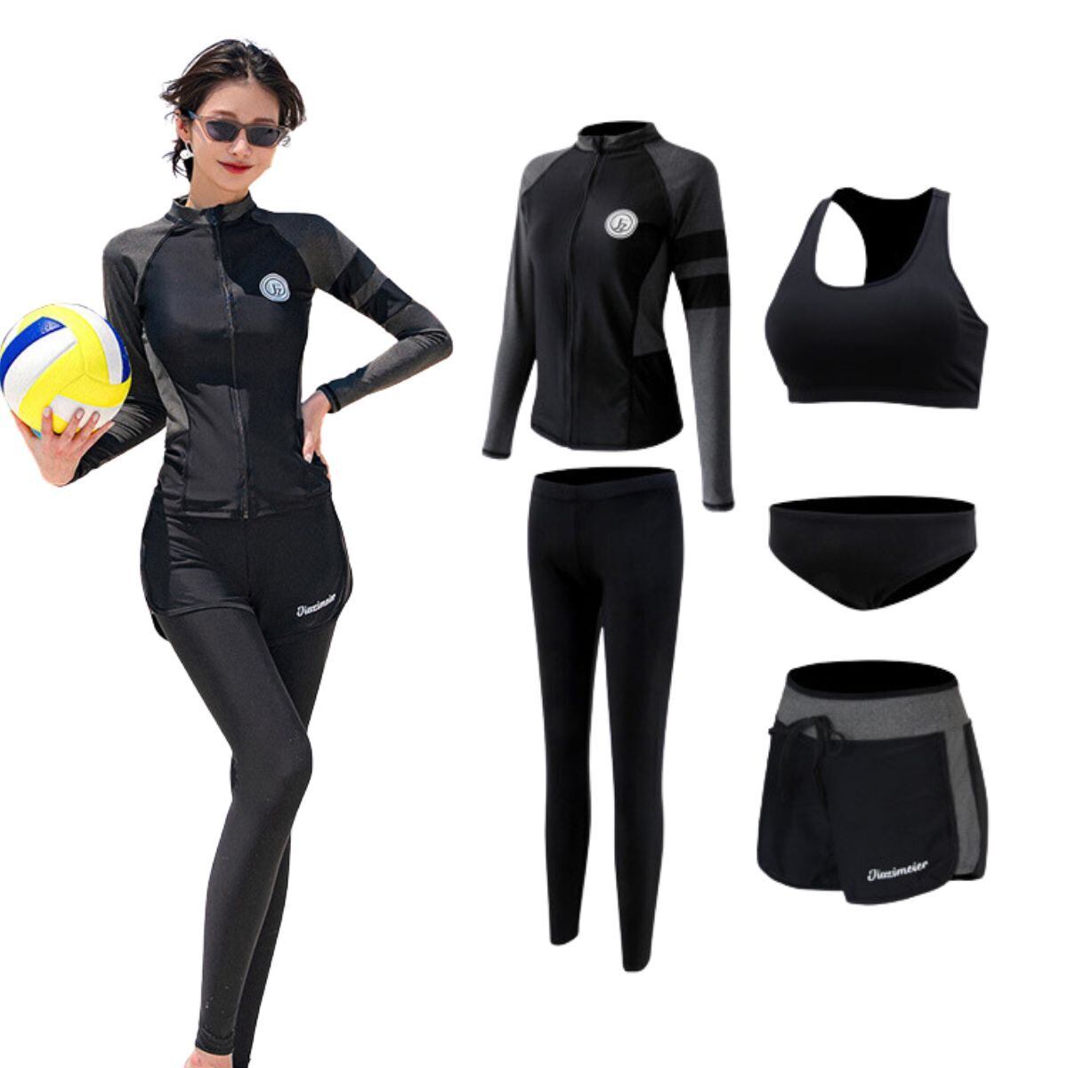 フィットネス 水着 レディース 長袖水着 体型カバー ペア カップル ラッシュガード 5点セット タンクトップ レギンス 長袖ラッシュパーカー UPF50+ UVカット 吸汗速乾 スポーツ スイミング サーフィン 競泳水着 | swimstar