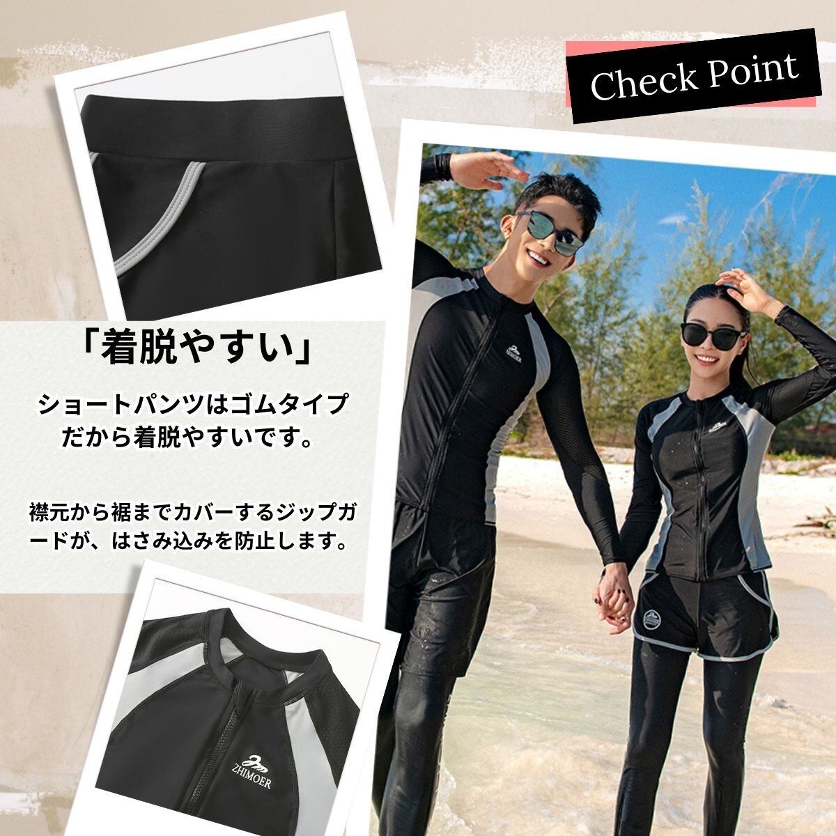 【体型カバー】ハイウエストパンツで小腹もカバー、ラッシュガードにはファスナーガードデザインを施し、顎や顔、首元の擦れを防止し、お肌を守ります。パッドも取り外し可能、ゆったり、使いやすく着回しがしやすい5点セットで、届いたらすぐに使えて準備も楽ちん!
