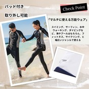 【UVカット】UPF50+生地(肌に有害な紫外線を98%以上カット)使用しているため、「着るだけ」で日焼け予防を完全に実現。足首丈レギンスは水を通さず、肌にベタつきにくく、虫刺されやクラゲ対策にも。けがを防止、身を守る為にも履いているだけで安心感UP!