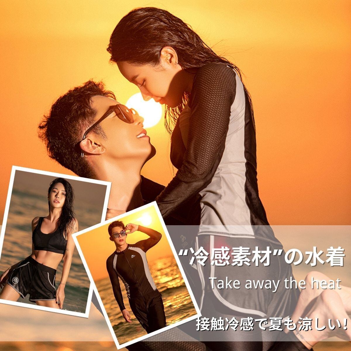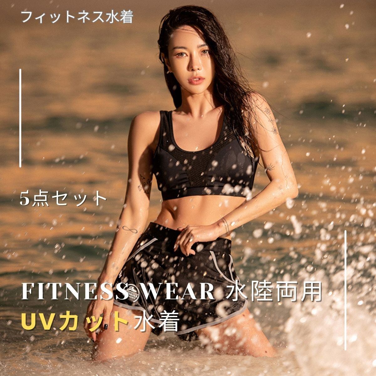 【5点セット】 長袖ラッシュガード、ショートパンツ、レギンス、ビキニ上下の5点セット。 ビーチ、プール、アウトドア、ウォーキング、ジョギングなどの各種トレーニングにお使いいただけます。夏の全ての環境に対応できる機能性はもちろんボディラインをしっかりとサポートする着心地!