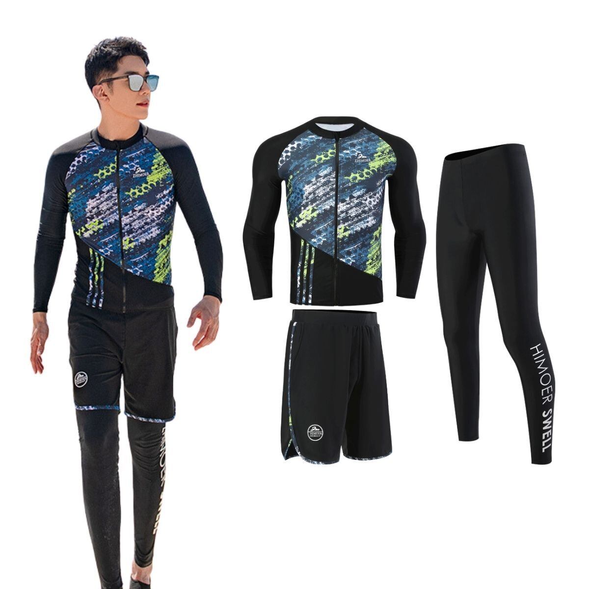 ラッシュガード メンズ 水着 上下 フィットネス水着 3点セット サーフパンツ レギンス 長袖水着 競泳水着 前開き UVカット UPF50+ 接触冷感 吸汗速乾 水陸両用 水泳 サーフィン | swimstar