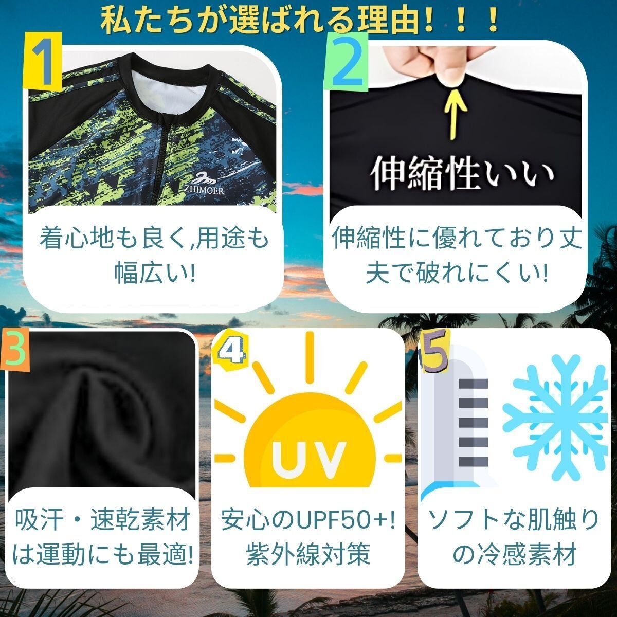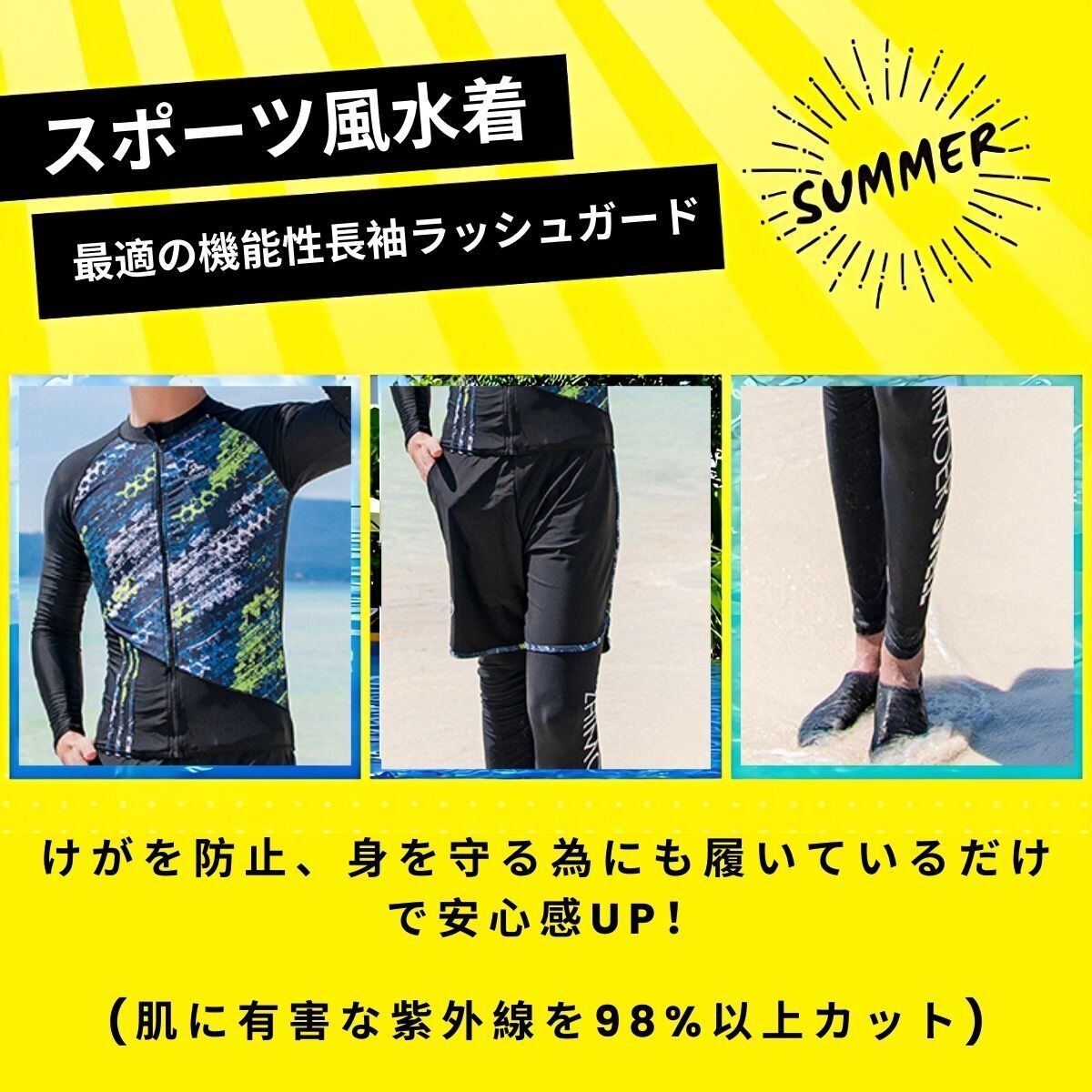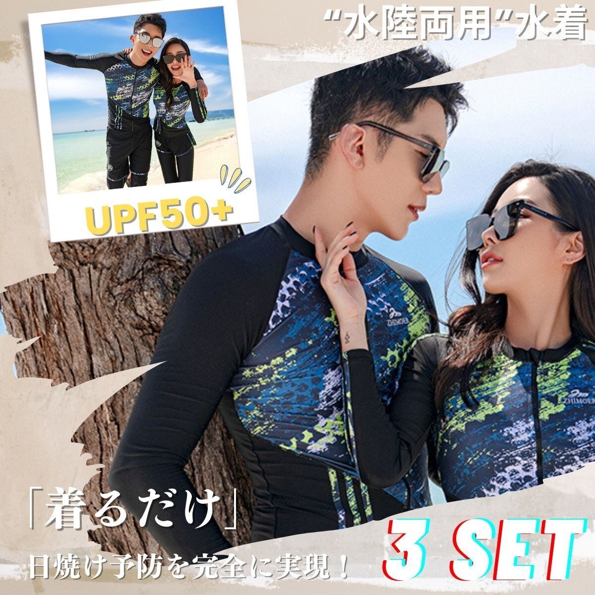 【セット内容】ラッシュガード、レギンス、サーフパンツ。長袖ラッシュガードパーカーを羽織って日焼け・冷え対策嬉しいデザイン!接触冷感で夏も涼しい、暑い季節もひんやり快適に過ごせます。最適の機能性長袖ラッシュガード、吸汗速乾通気のドライ繊維、激しい運動の後もさらっとした着心地!