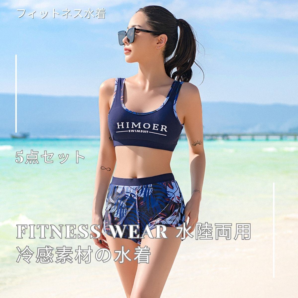 水着 レディース 長袖水着 体型カバー 5点セット フィットネス水着 ラッシュガード パンツ レギンス ブラ ショーツ オシャレ タンキニUVカット 接触冷感 水陸両用 ソフト肌触り 女性用 サーフィン スポーツ | swimstar