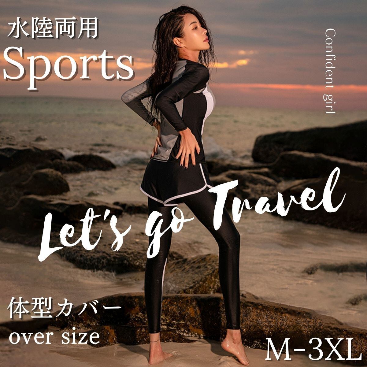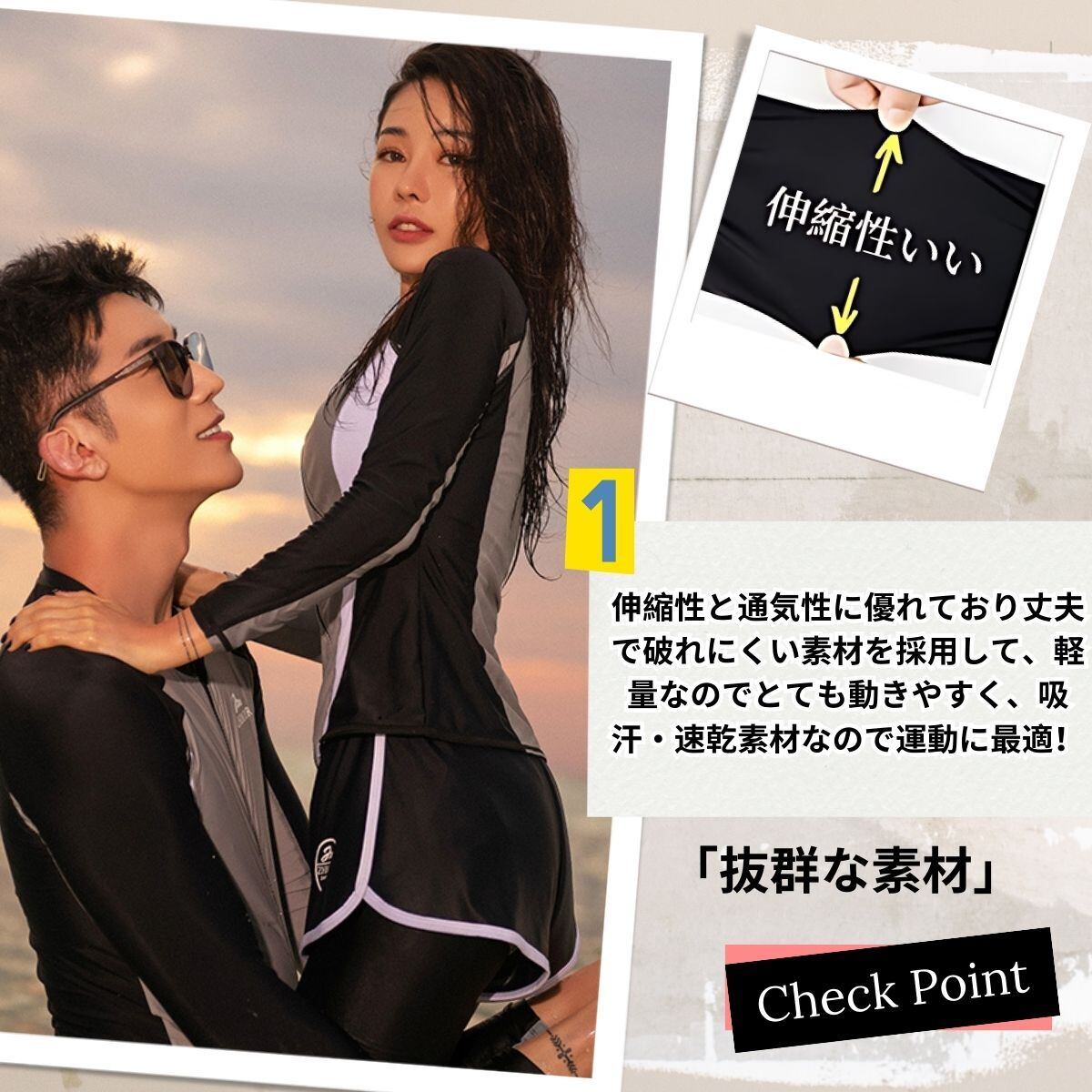 【5点セット】 長袖ラッシュガード、ショートパンツ、レギンス、ビキニ上下の5点セット。 ビーチ、プール、アウトドア、ウォーキング、ジョギングなどの各種トレーニングにお使いいただけます。夏の全ての環境に対応できる機能性はもちろんボディラインをしっかりとサポートする着心地!