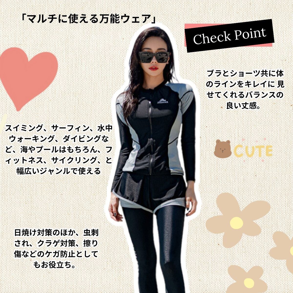 水着 レディース フィットネス水着 長袖水着 前開き セパレート 体型カバー ラッシュガード 5点セット フィットネス水着 長袖ラッシュパーカー UVカット 接触冷感 水陸両用 ソフト肌触り | swimstar