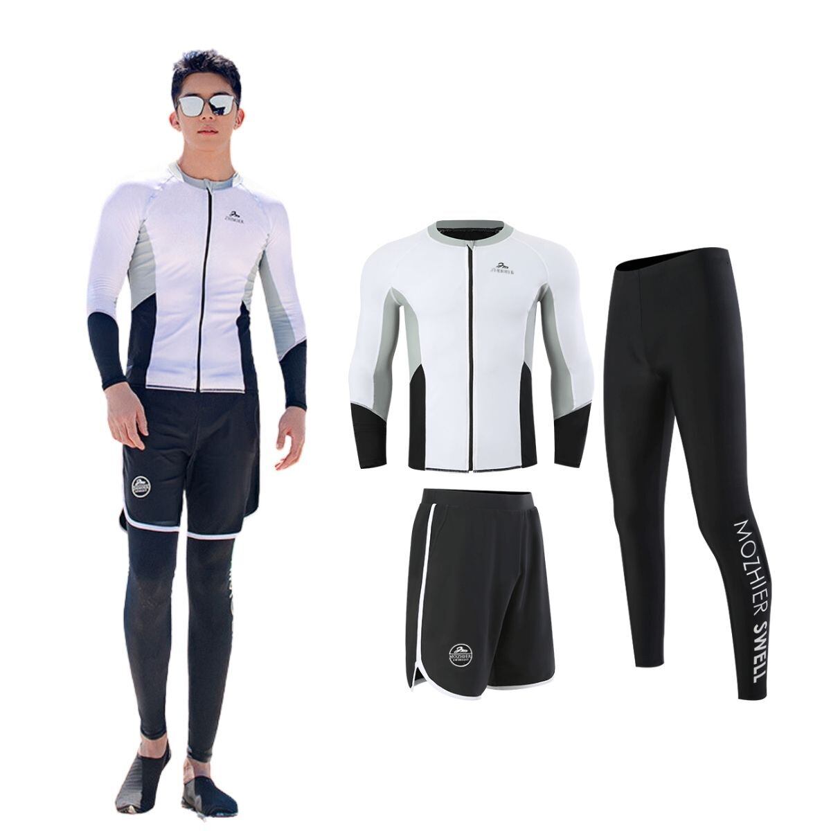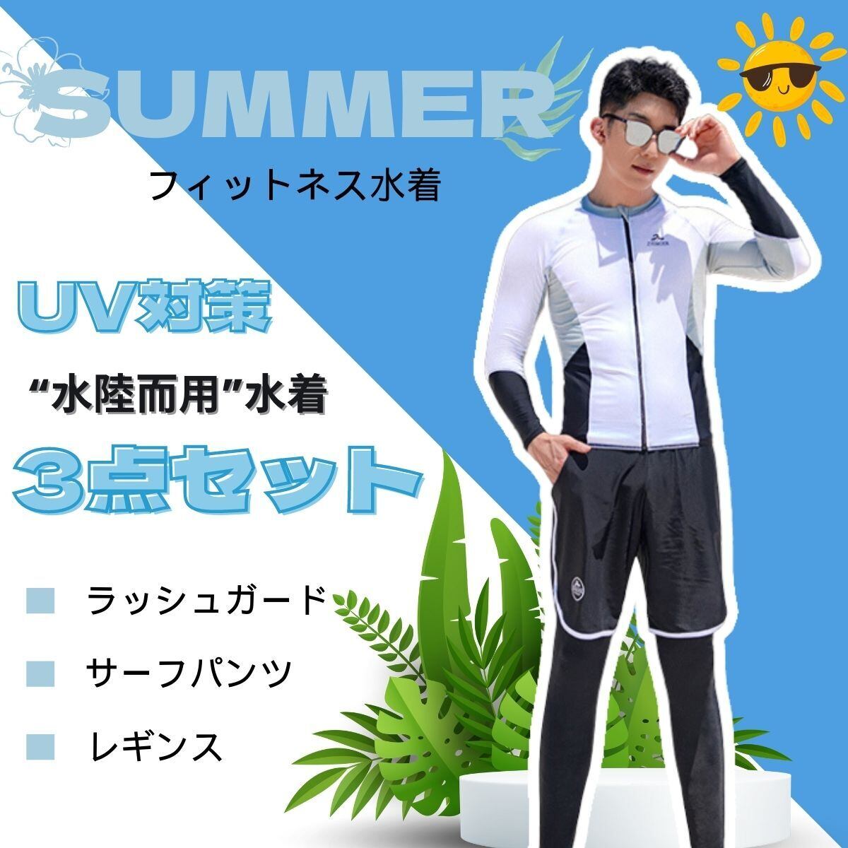 ★【セット内容】ラッシュガード、レギンス、サーフパンツ。最適の機能性長袖ラッシュガード、吸汗速乾通気のドライ繊維、激しい運動の後もさらっとした着心地!サーフパンツとレギンスセット、レギンス付き足首まであるので、虫刺されやクラゲ対策、擦り傷などの外傷対策にも♪♪